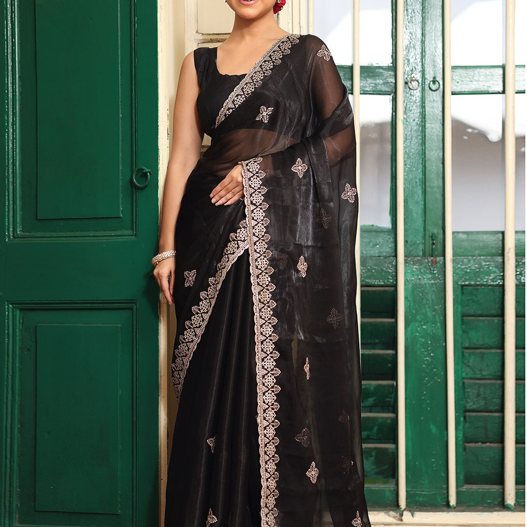 Black Organza Designer Saree