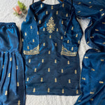 Bluish Shiny Embroidered Top Sharara