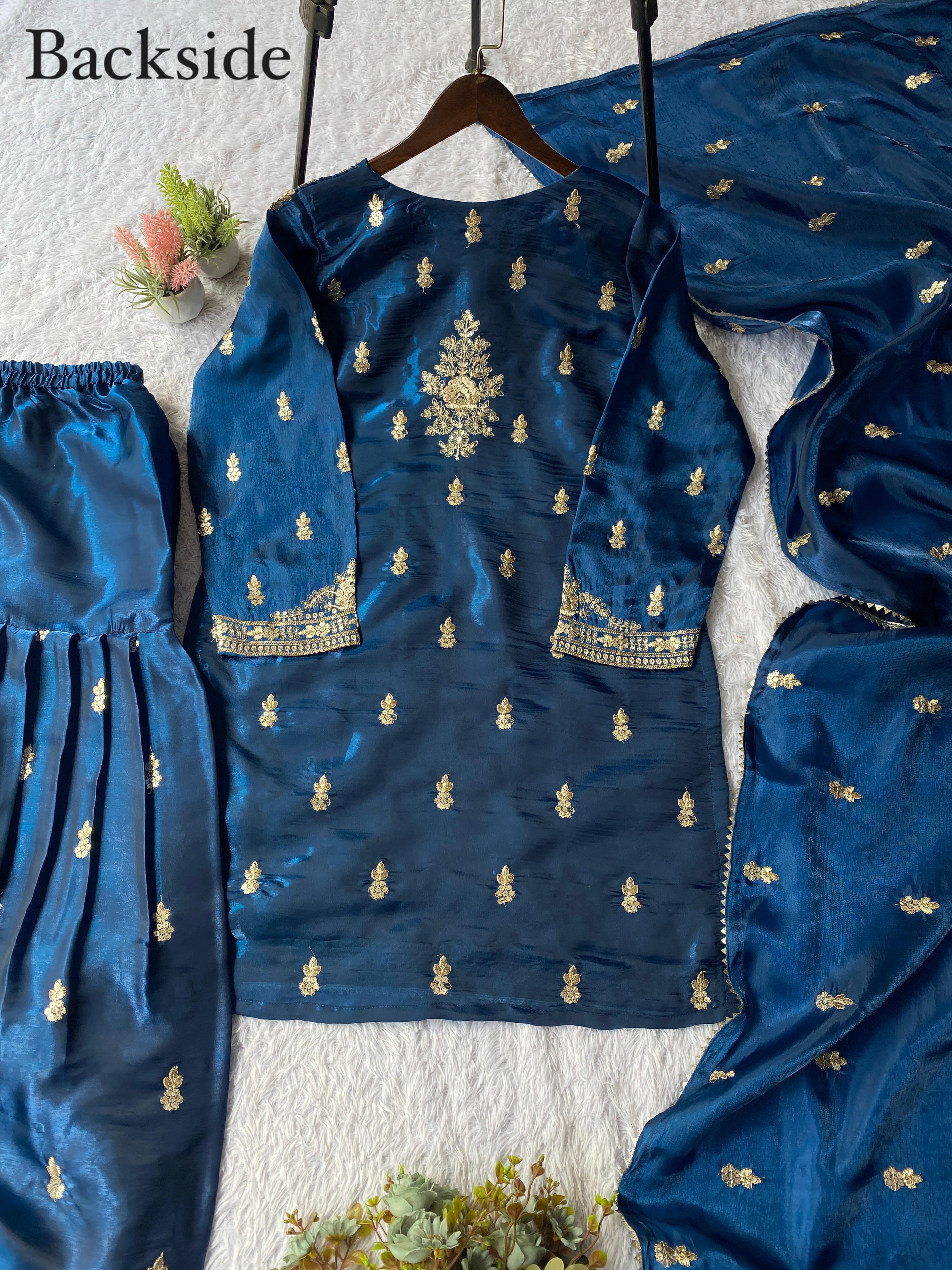 ___✨ EXCLUSIVE AND TRENDY FOR WEDDING SEASON OUR CORDING WITH SEQUENCE EMBROIDERY WORKED TOP, PLAZZO AND DUPATTA IN ZIMMY CHOU ✨___