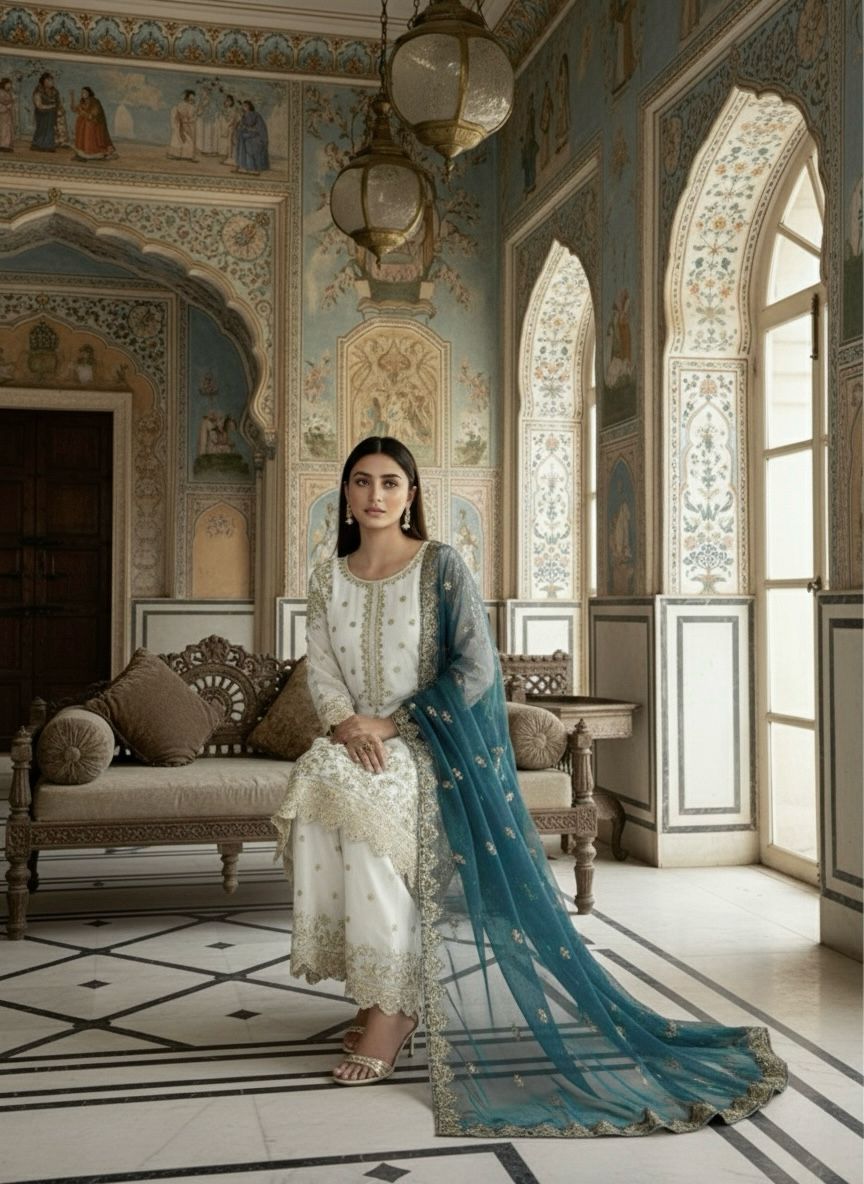 Classical Embroidered Top Plazzo
