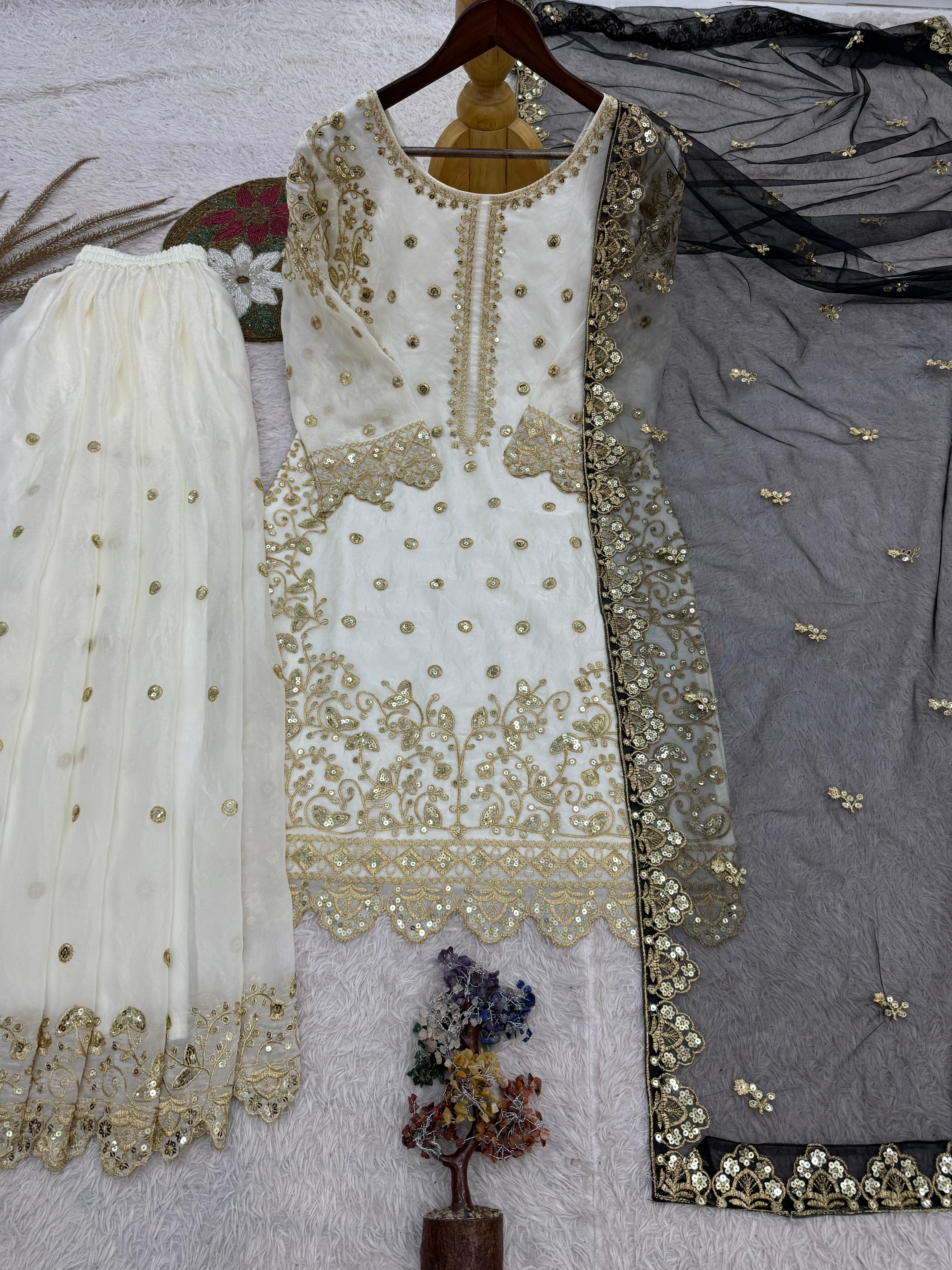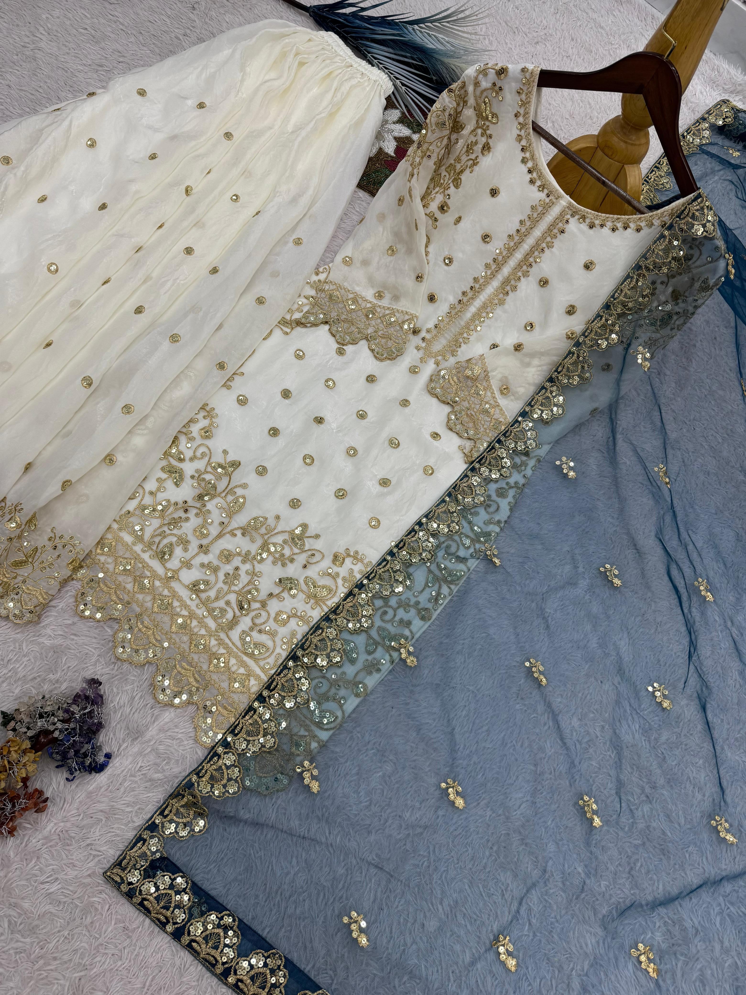 *➡️WORK* :- ATTRACTIVE EMBROIDERY AND SEQUENCE WORK WITH CUT WORK