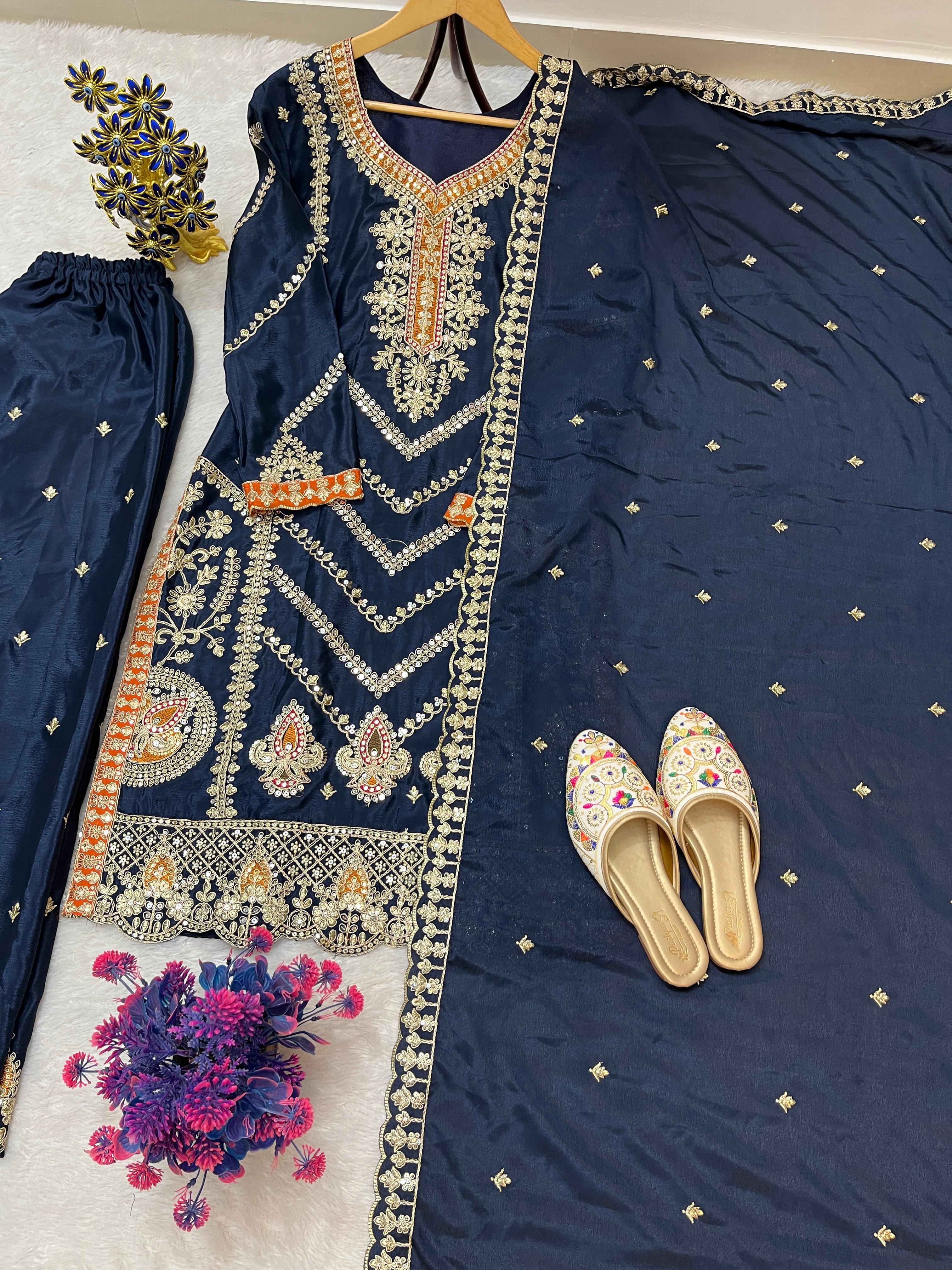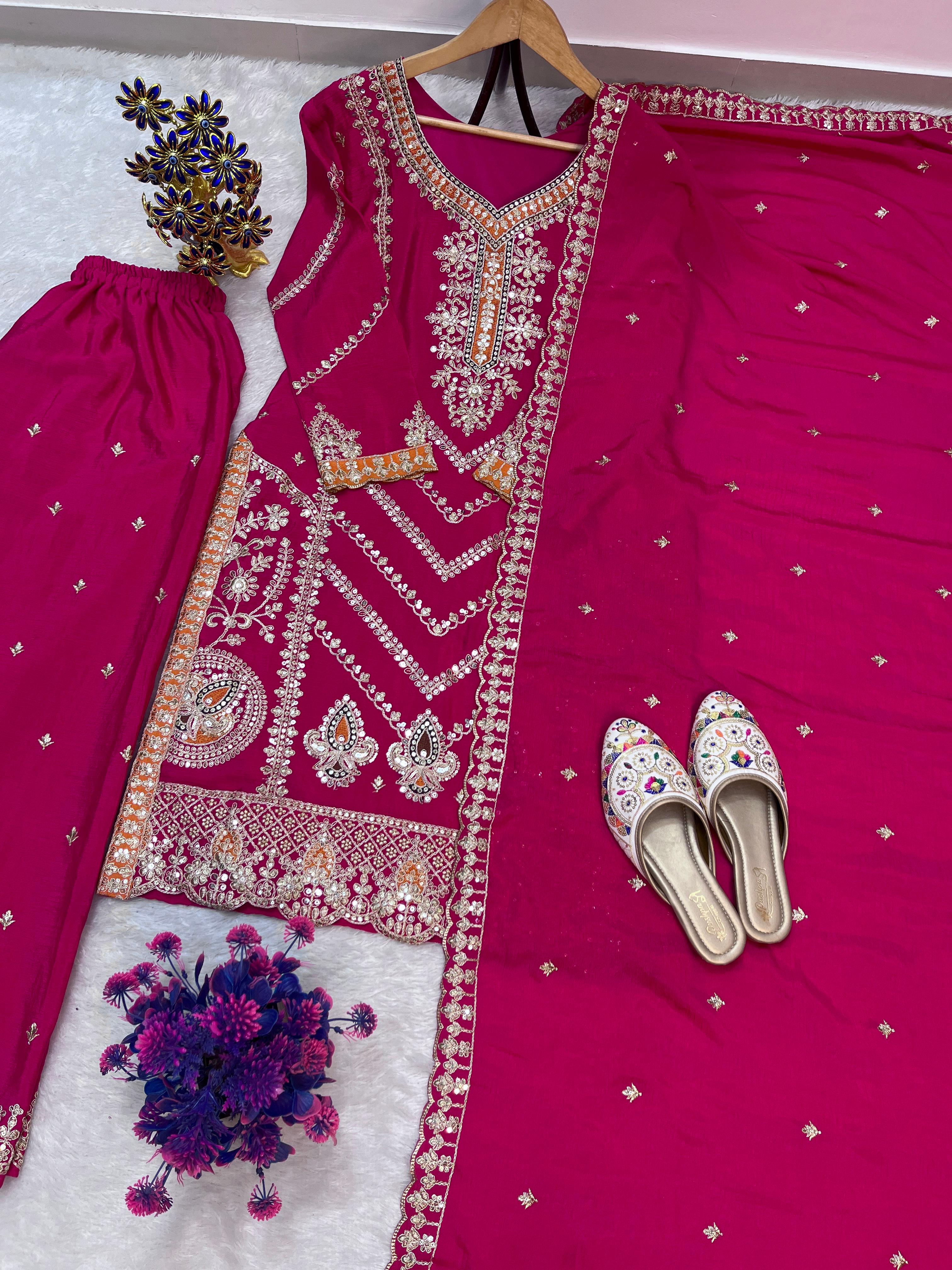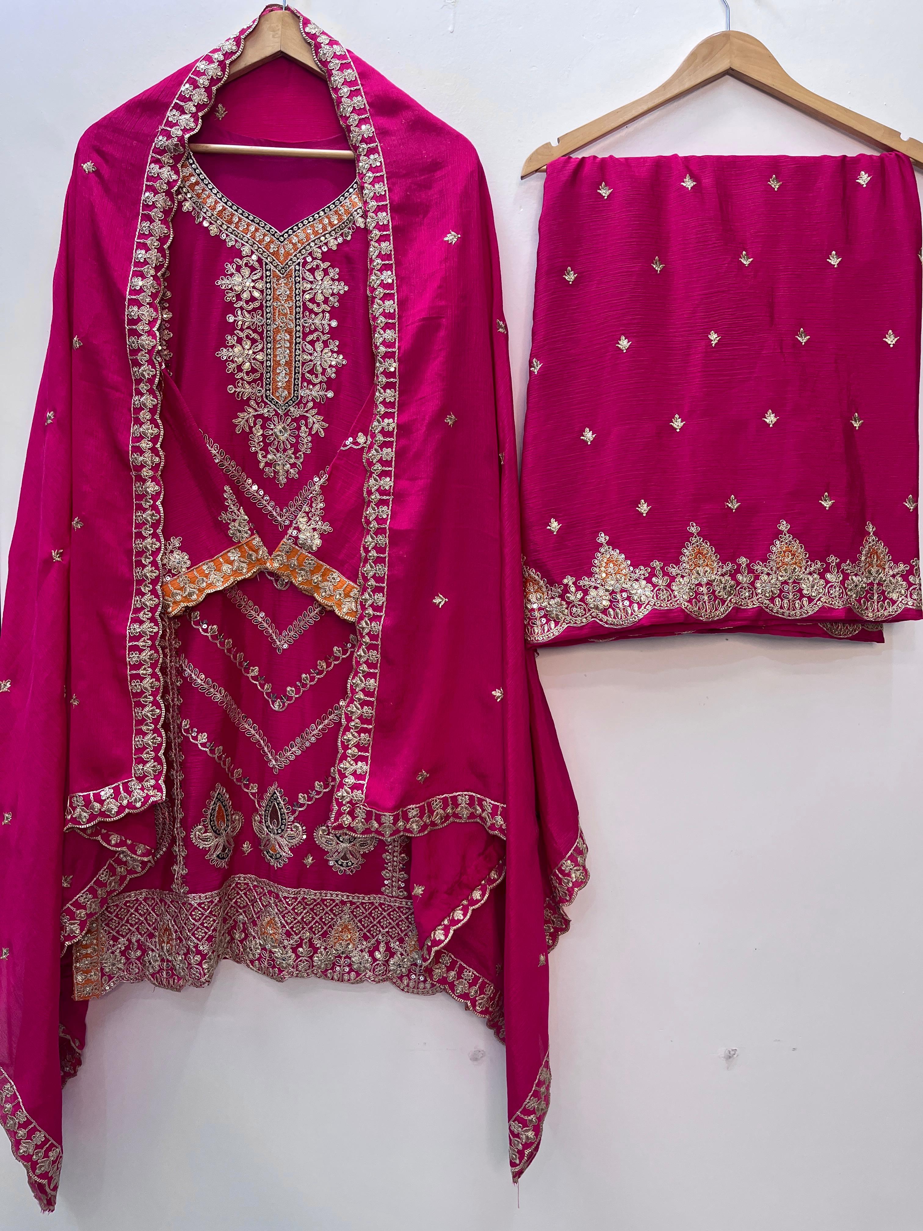 🌙 EID SPECIAL SEQUENCE EMBROIDERY ON SILK FABRIC TOP AND PLAZZO WITH DUPATTA