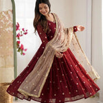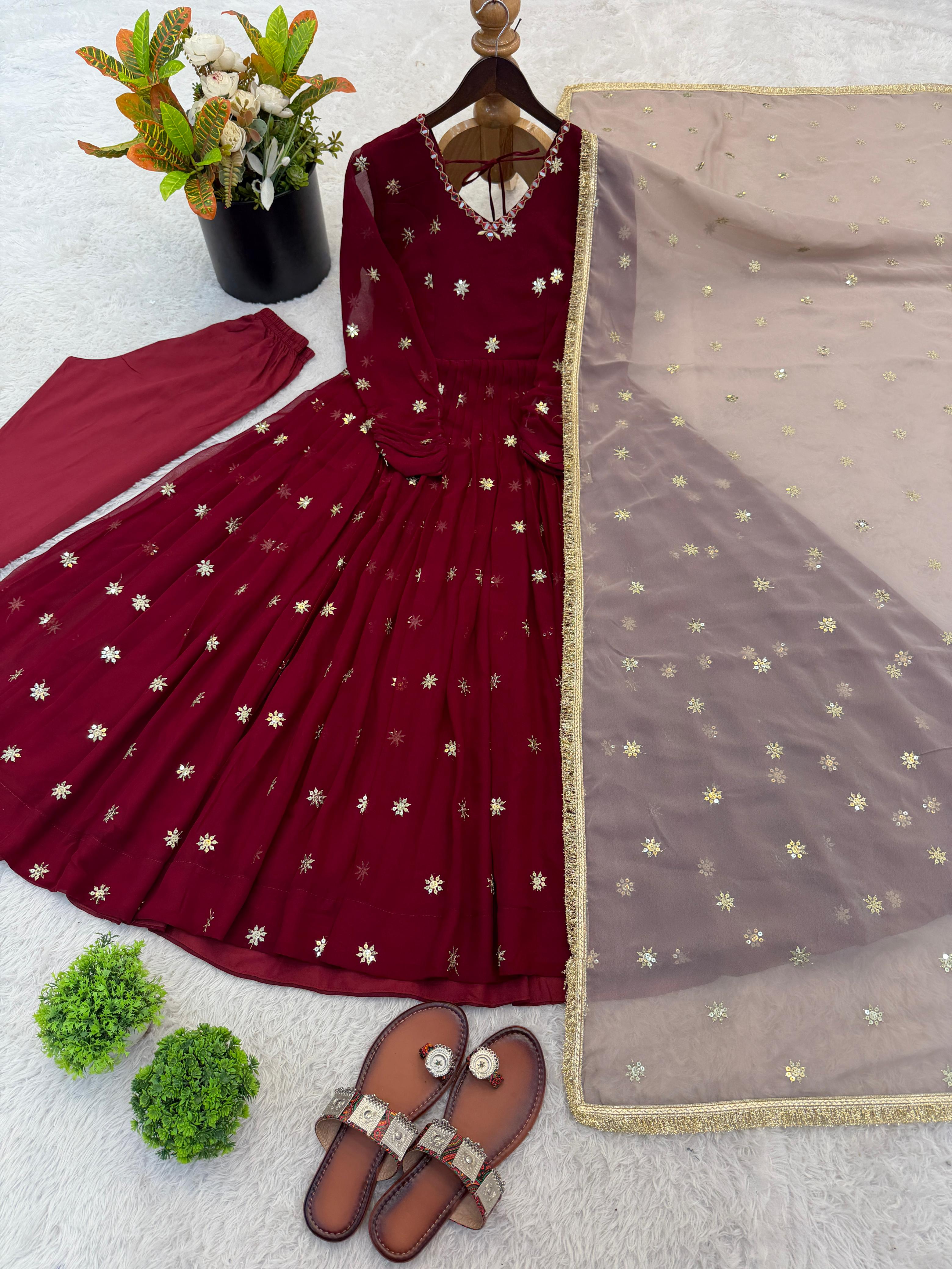*Presenting New Designer Collection In Faux Georgette With Embroidery Work Gown And Dupatta Set Fully Stitched Ready To Wear 🔥😍🥰*