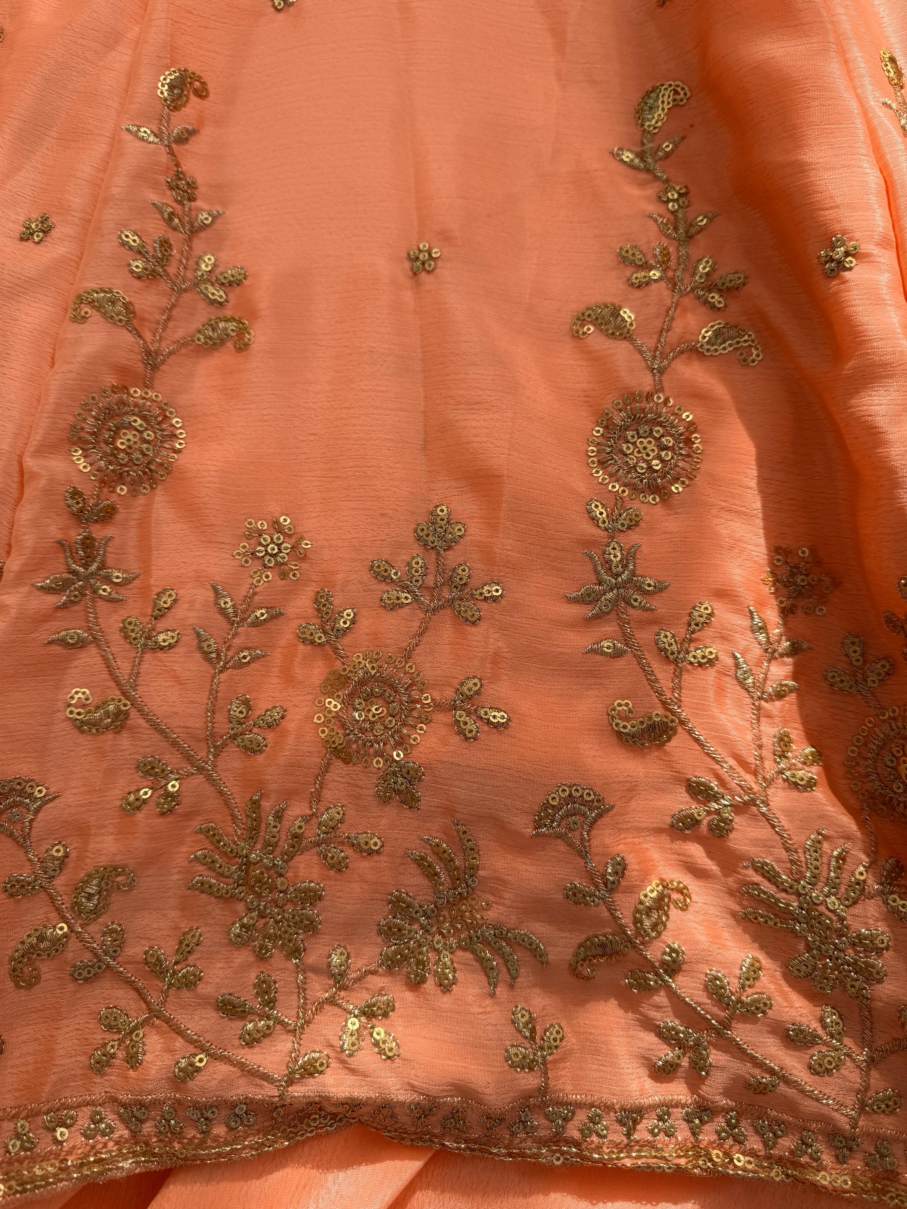 Designer Orange Silk Top Lehenga