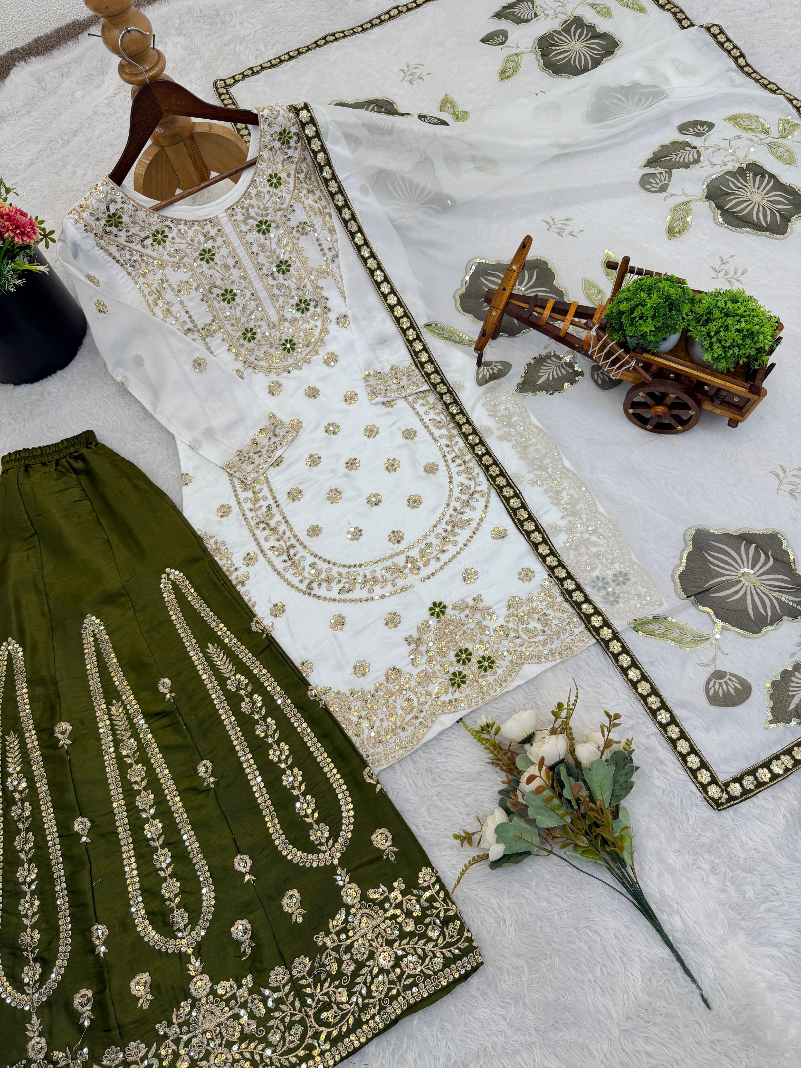 *Presenting New Designer Collection In GMY SILK With Heavy Embroidery Sequence Work Top-Bottom And Dupatta Set Fully Stitched Ready To Wear *🔥😍🥰