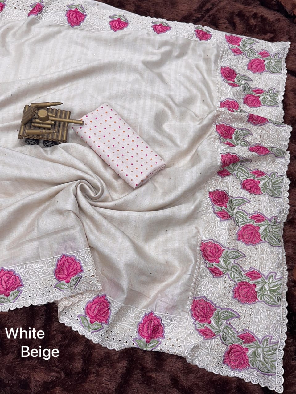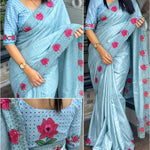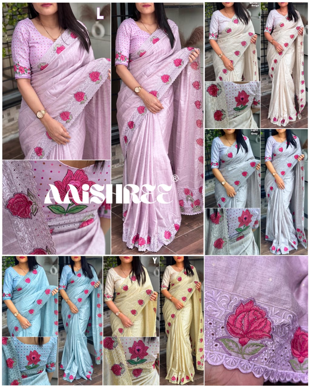 1- multi thread Embroidery work in saree with cutwork & boaring work