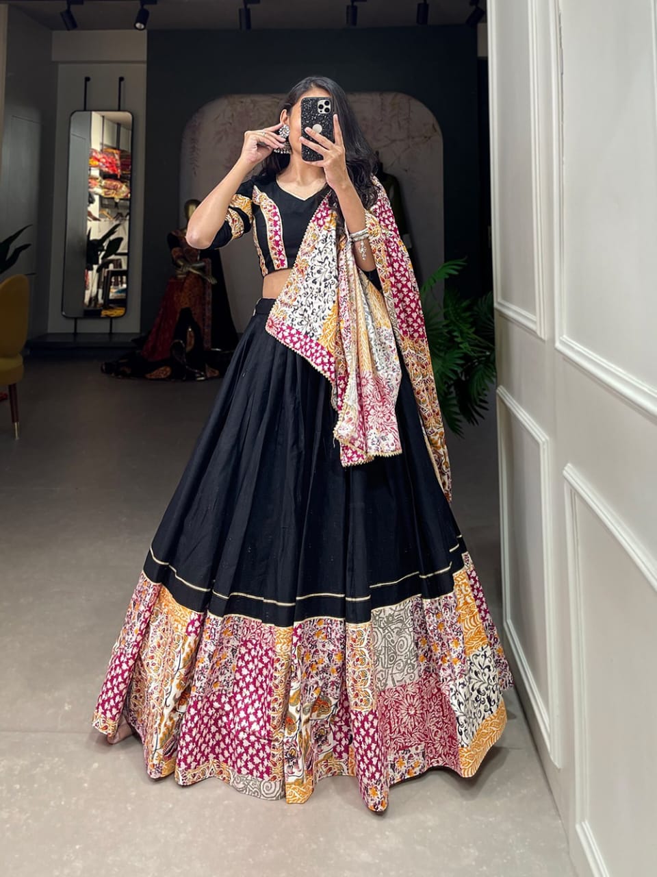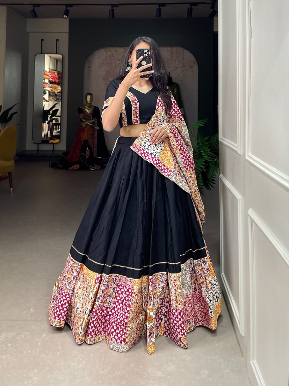 Embracing the delicate printed details in your garba choli