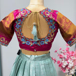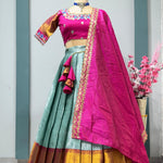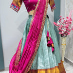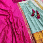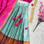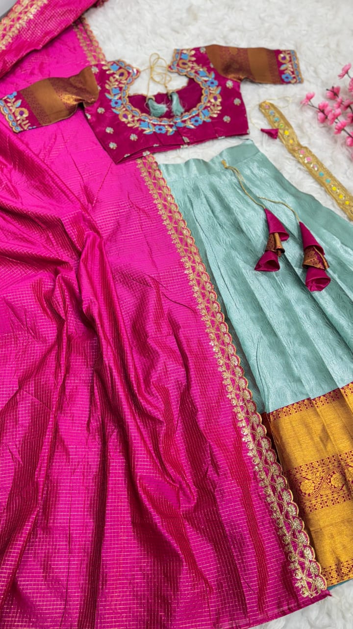 Lehanga  Details:- Full stiched Kanjivaram silk With big jequard Border attached with Canvas patta zip and Latkan