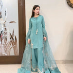 Plazzo Fabric:Pur Natural Crepe With Embroidery 3 mm Sequence Work With Elastic