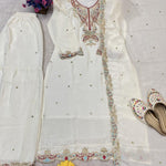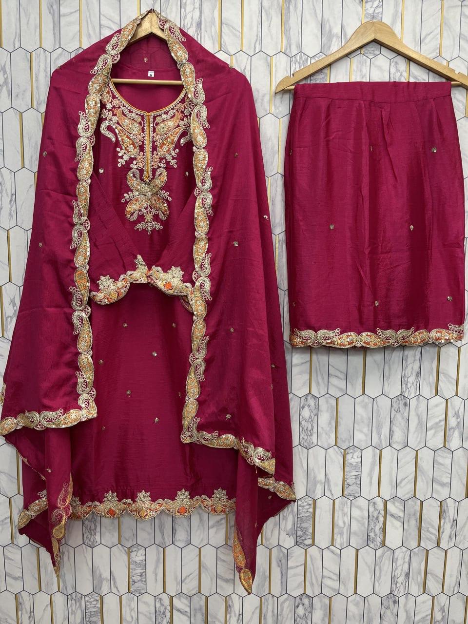FESTIVAL SEASON LUNCH NEW DESIGNER HEAVY EMBROIDERY WORK ON SILK FABRIC TOP SHARARA AND DUPATTA SET