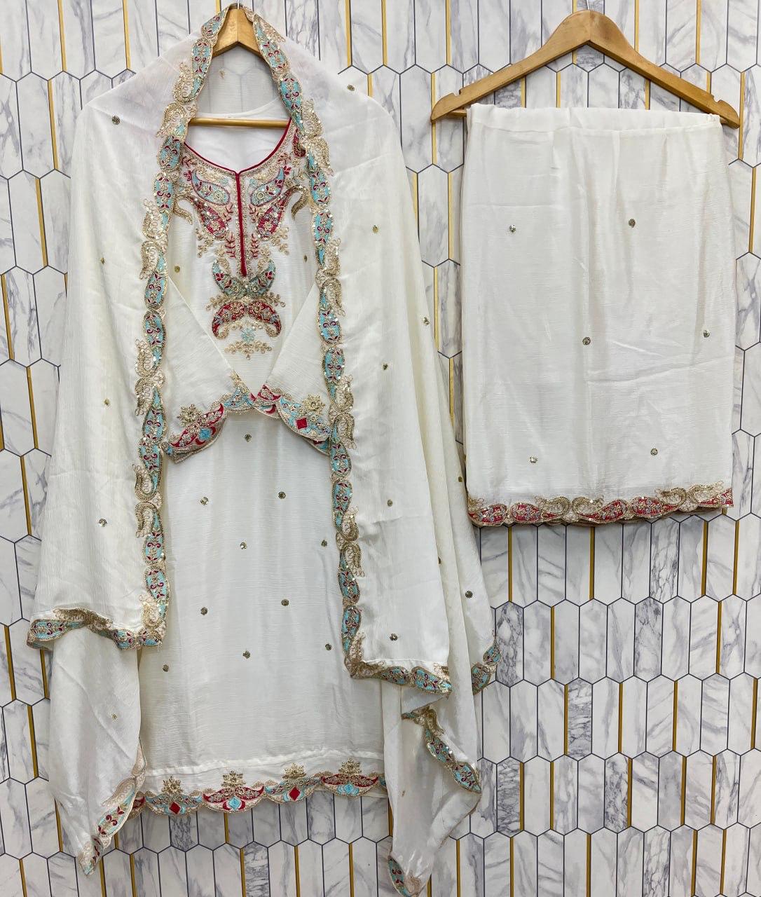 Festive Chinon Silk Embroidered Suit
