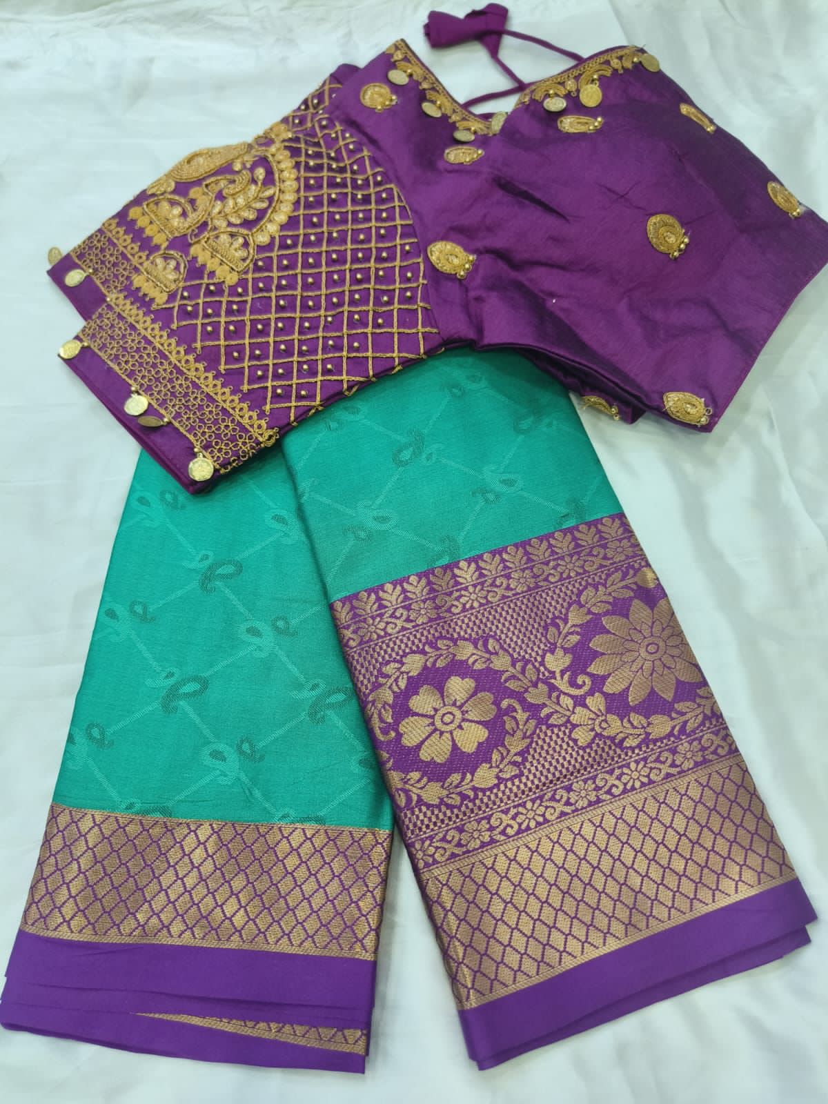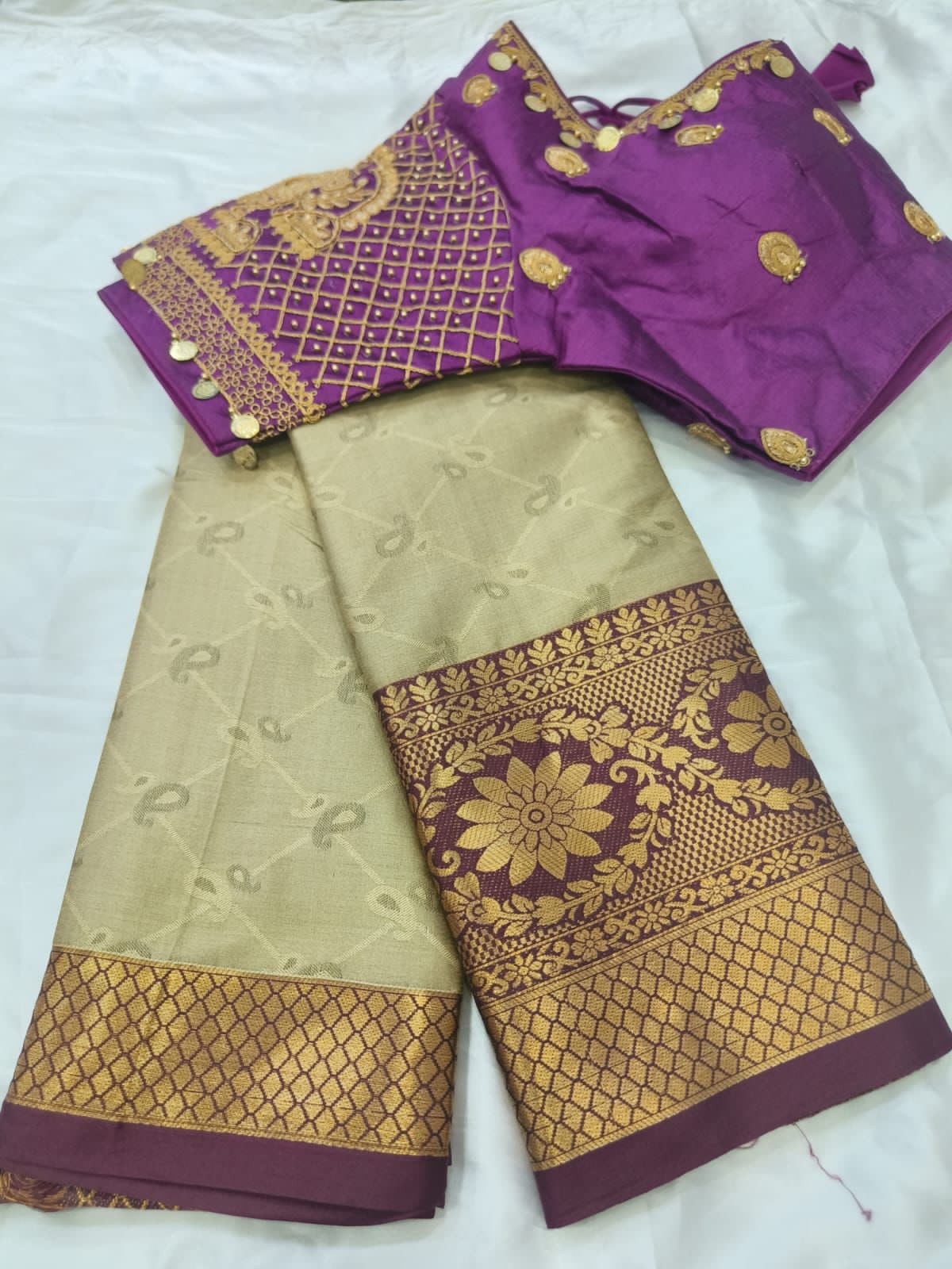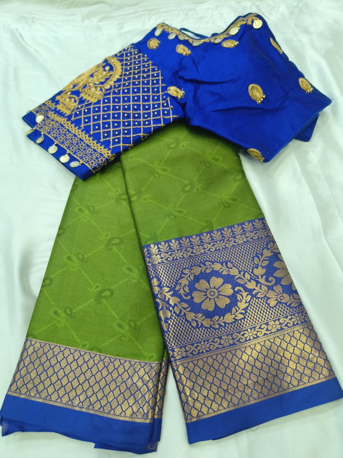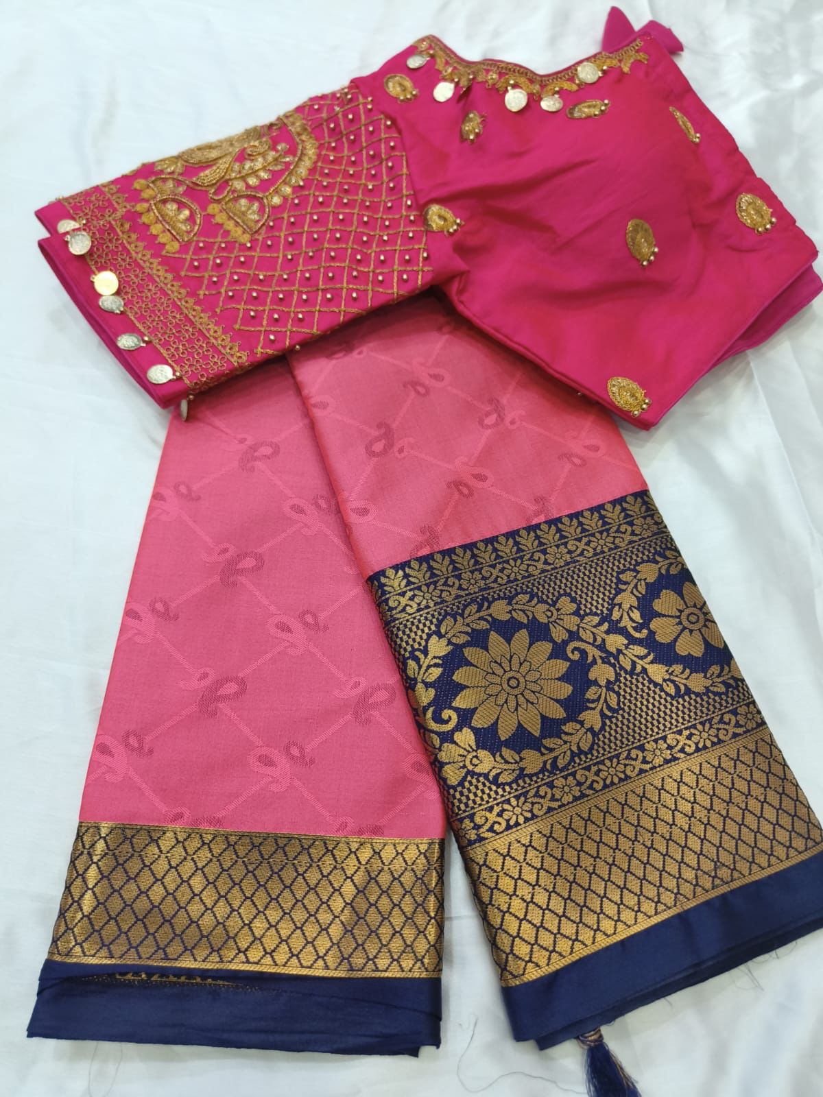 😍Saree look Rich cotton silk With Beautiful Tone colour saree with readymade blouse 😍