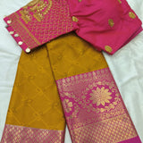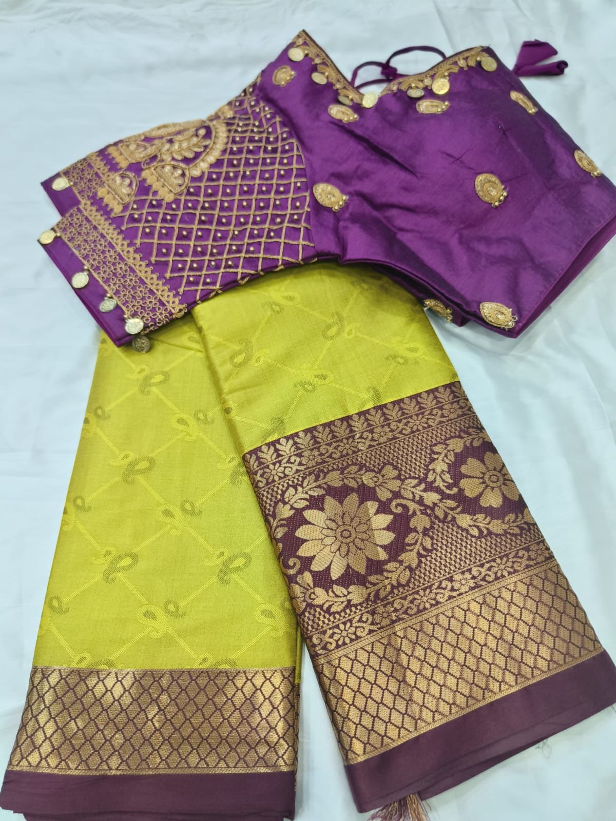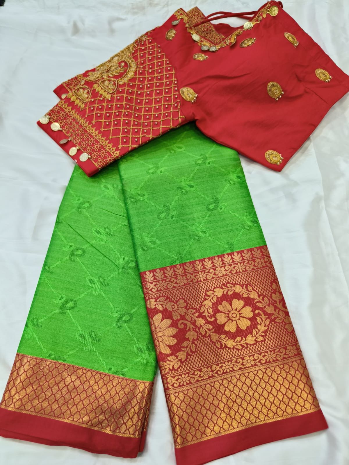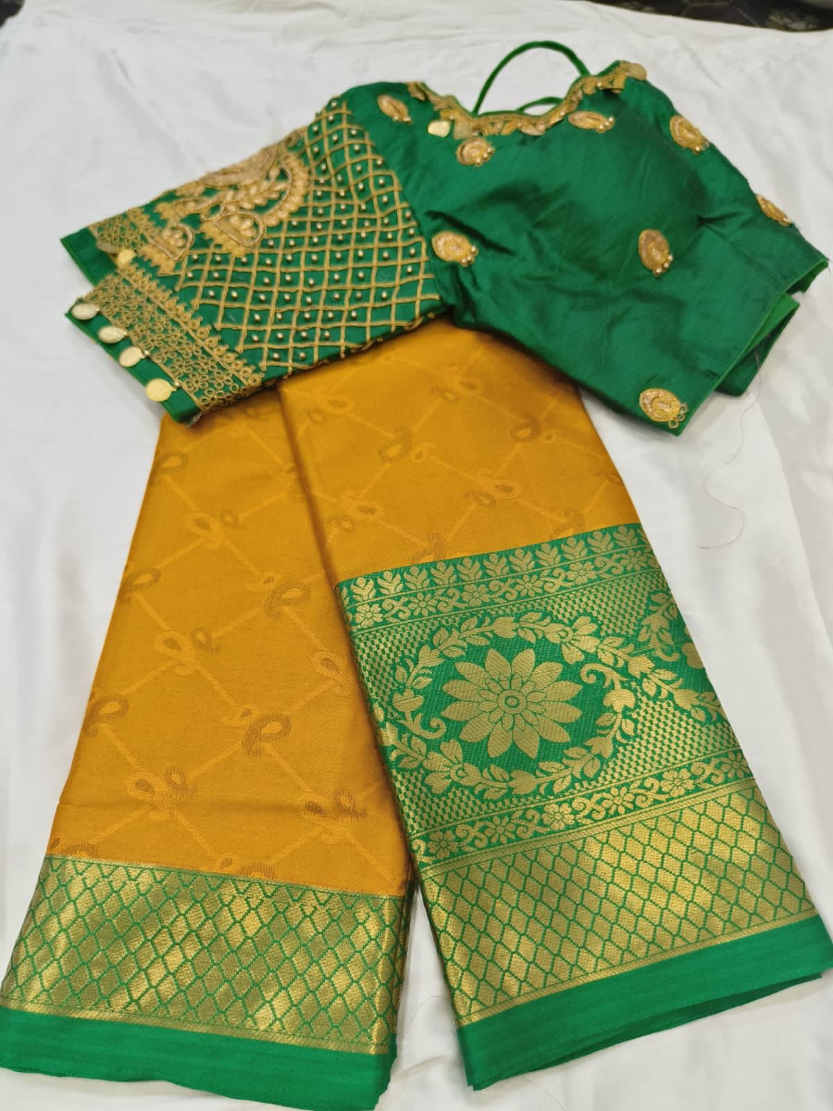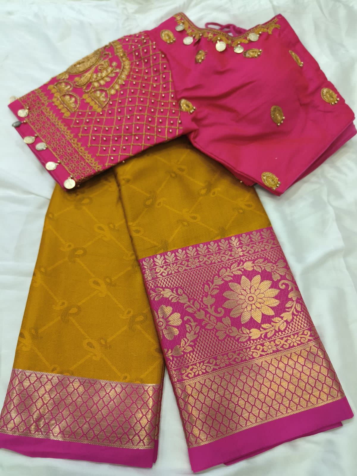 😍Saree look Rich cotton silk With Beautiful Tone colour saree with readymade blouse 😍