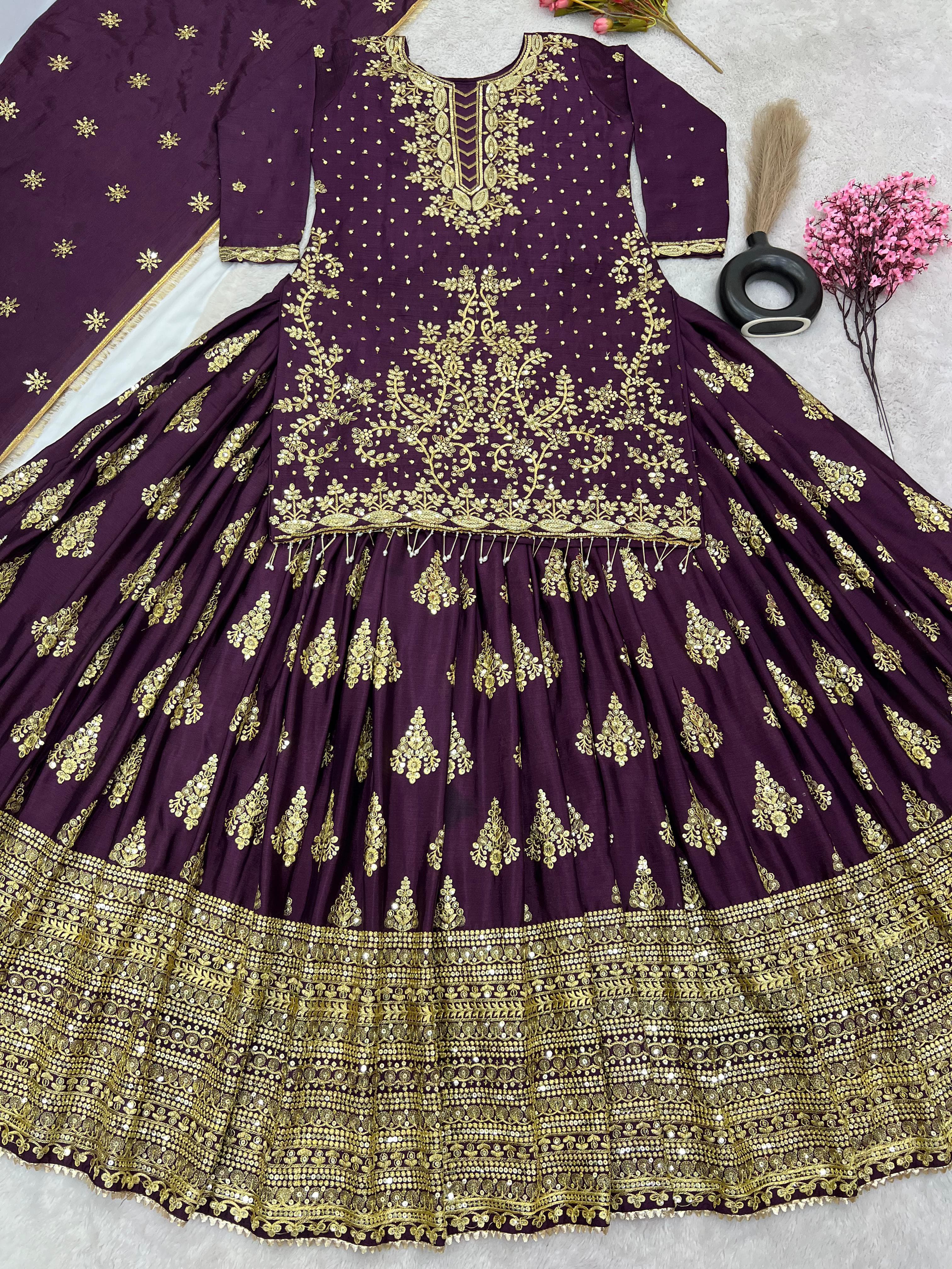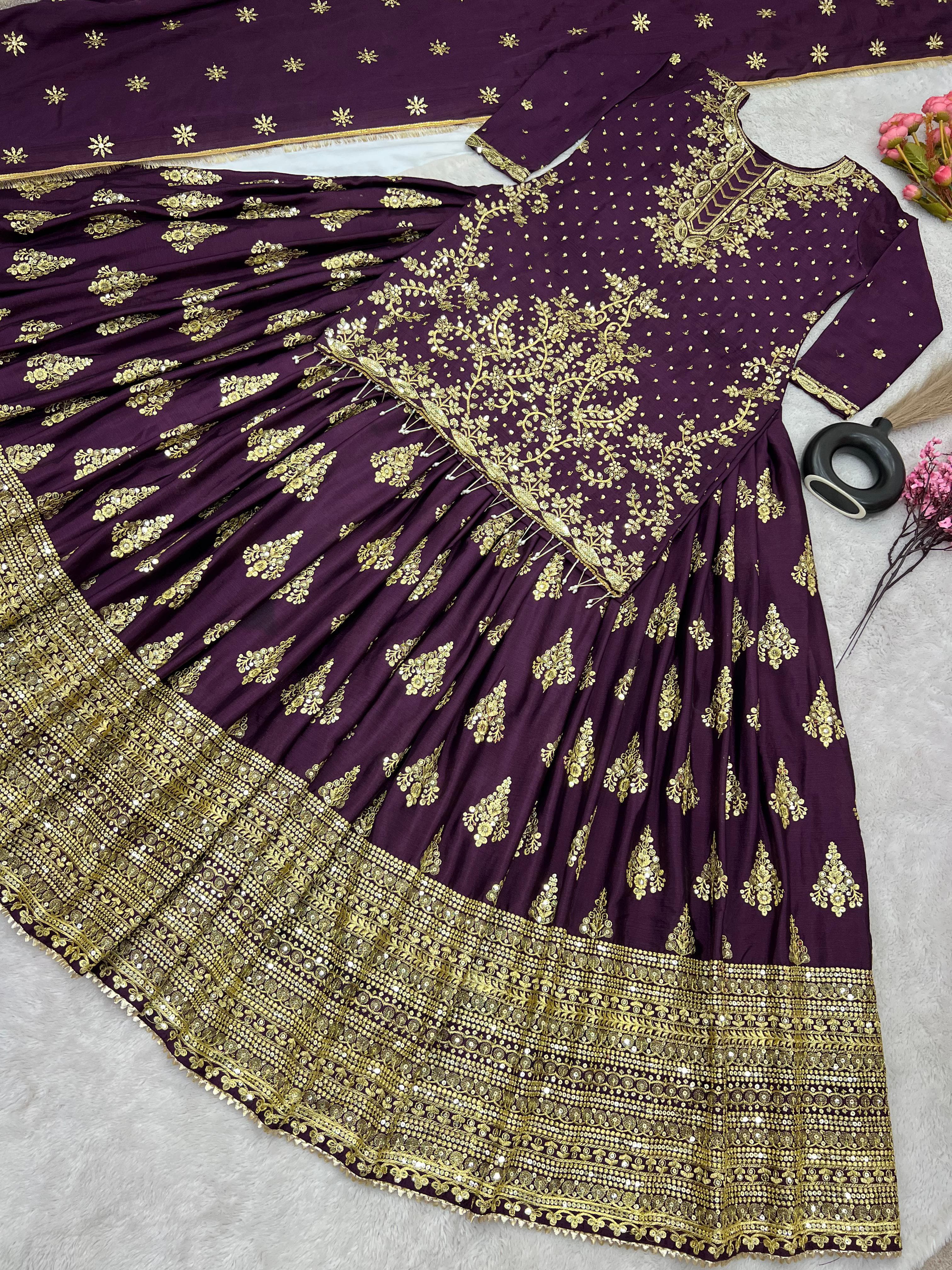 Top Fabrics         : Pure Heavy Chinnon Silk With Heavy 5mm Embroidery Sequence Work With  Sleeves