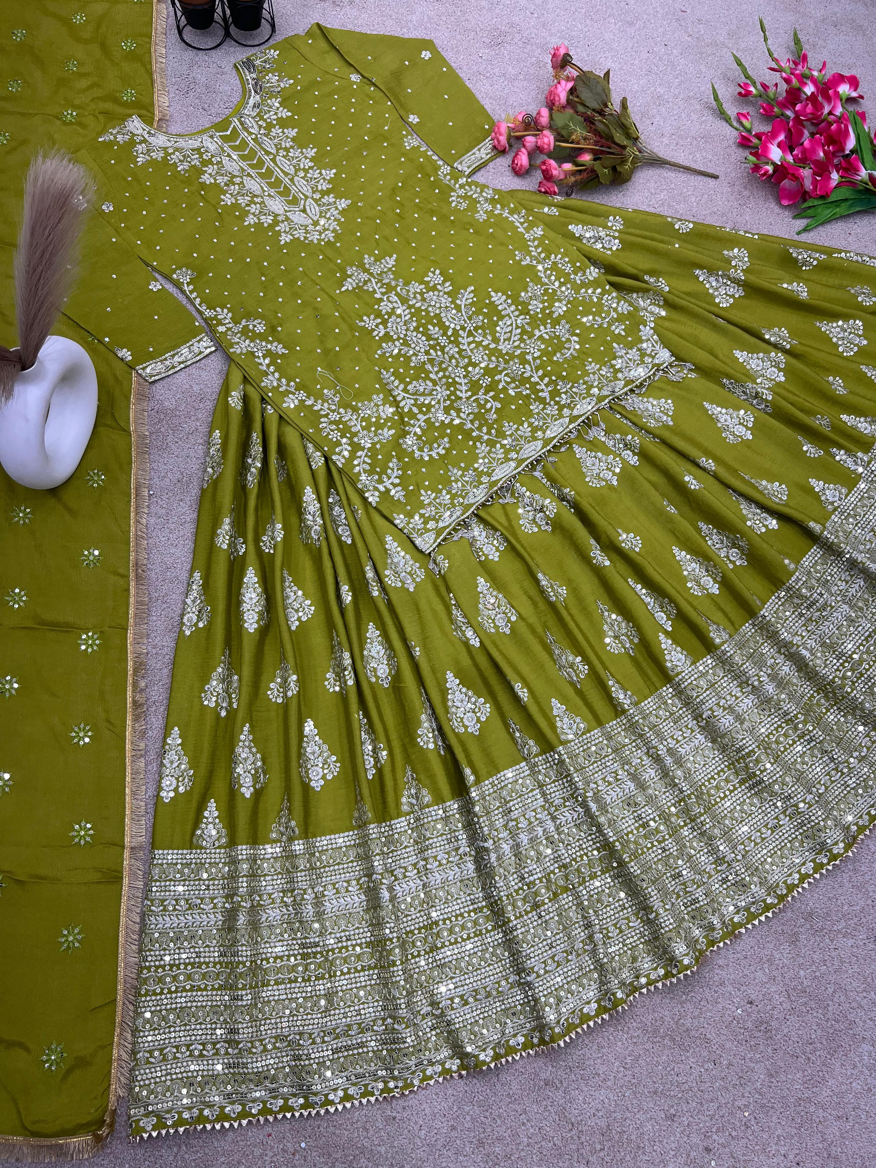 Lehenga Fabric :Pure Heavy Chinnon Silk With Heavy 5mm Embroidey Sequence Work