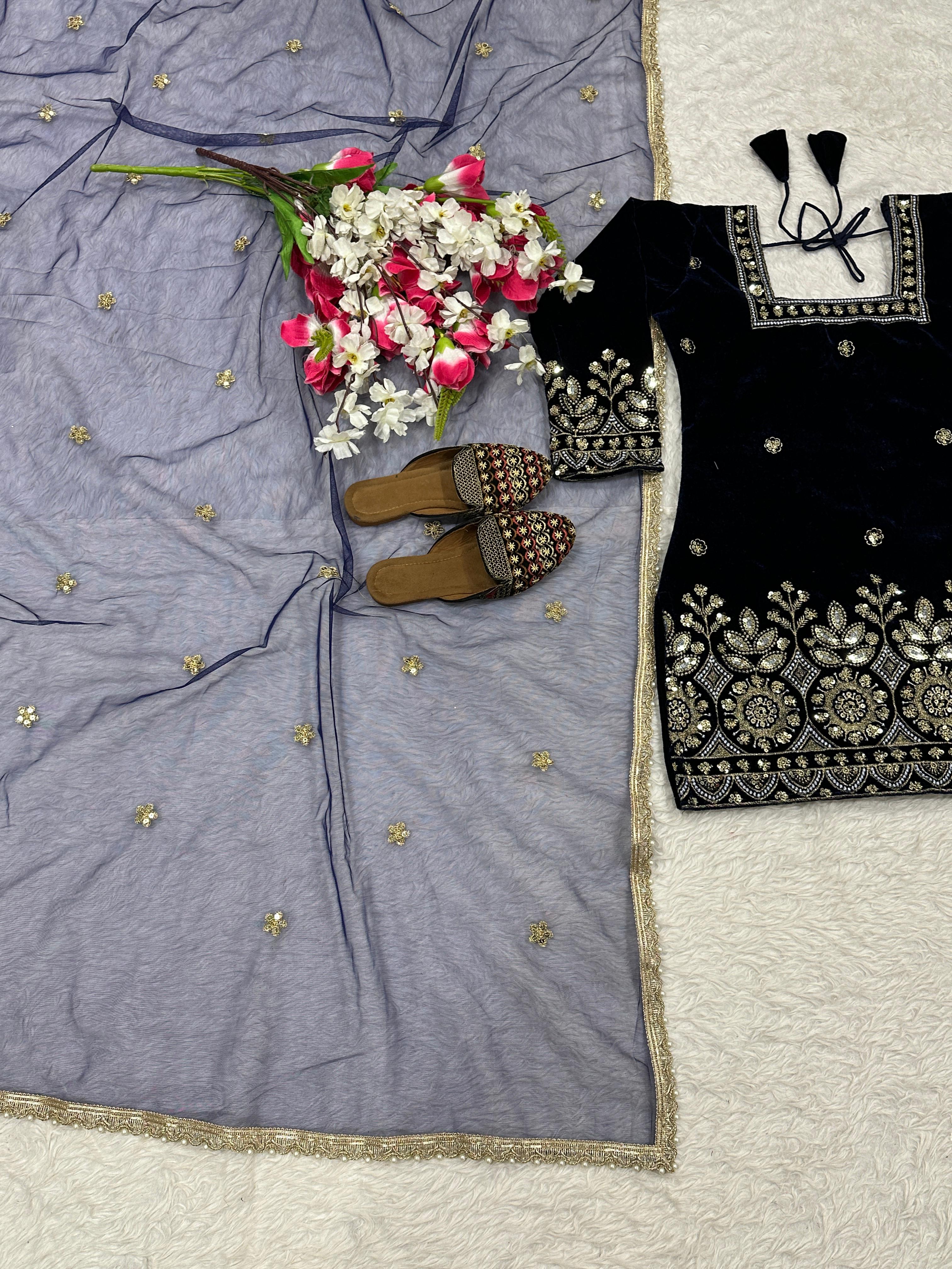 💃*Pant fabric* :Pure Heavy Viscose Velvet With Heavy Embroidery Multi Sequence Work  *(FullyStitched)*