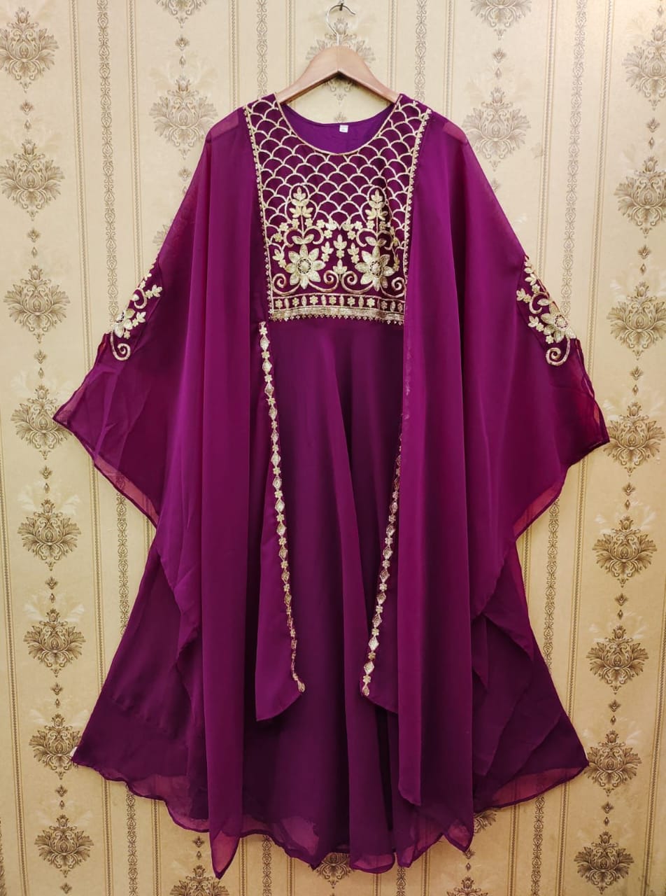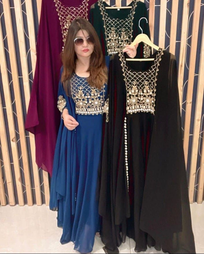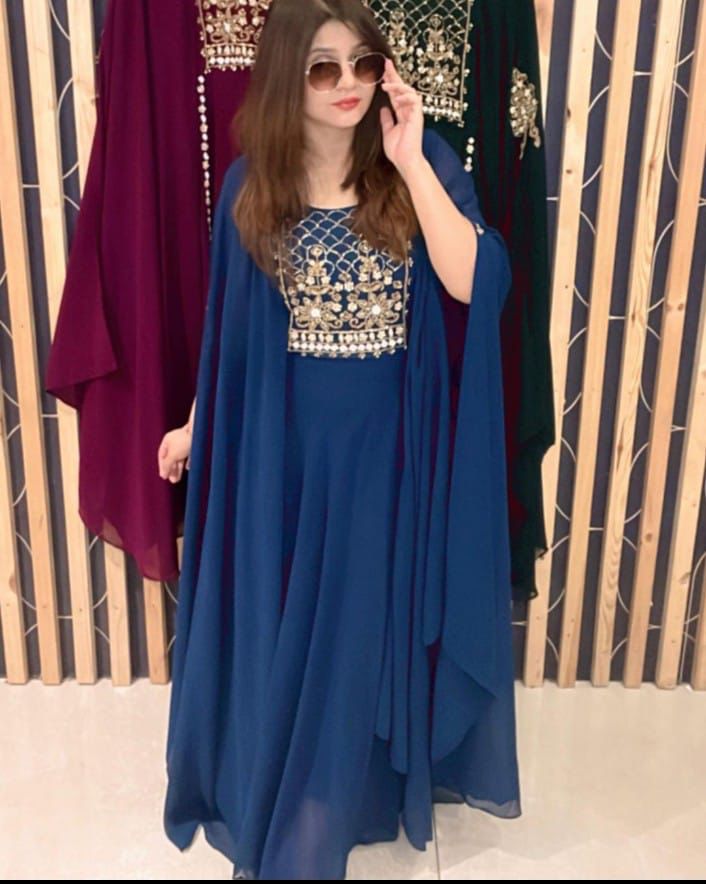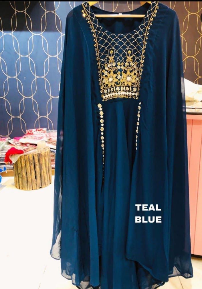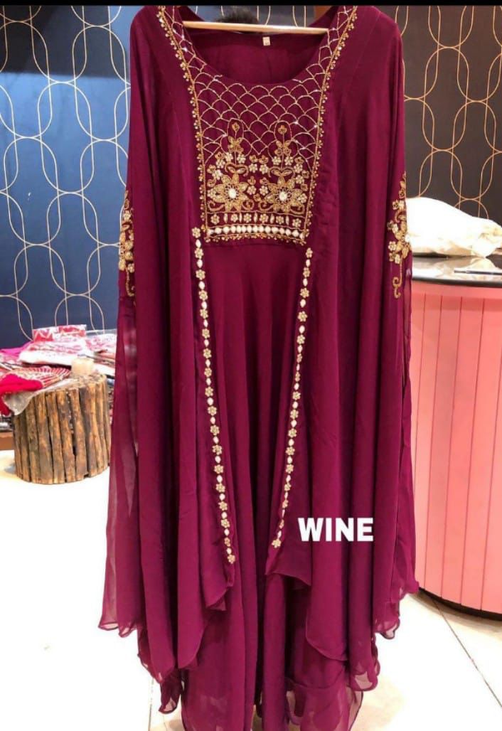 Gown Fabric :Heavy Faux Geourgett With Attech Shrug