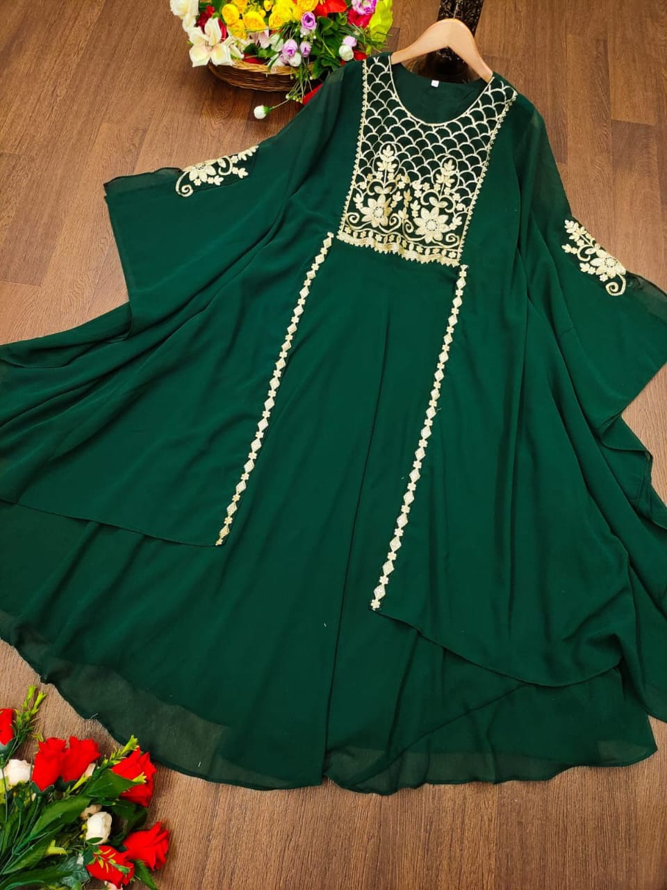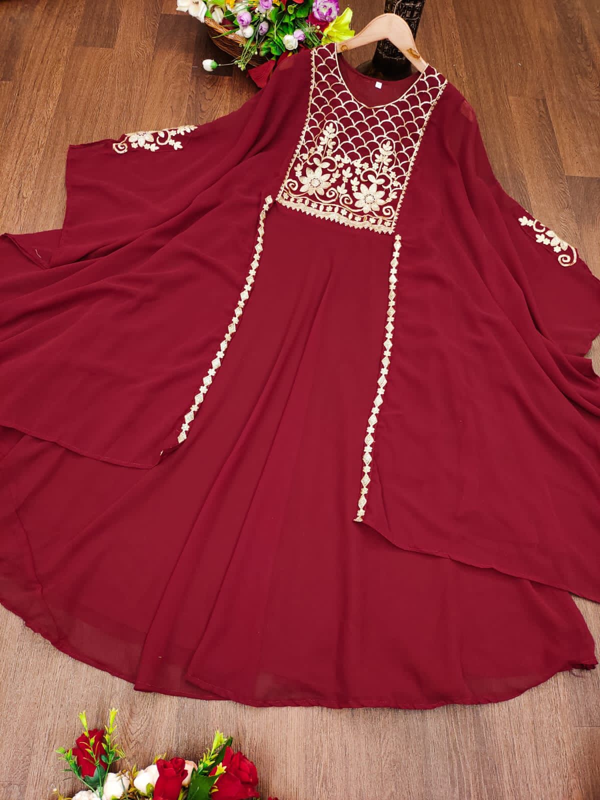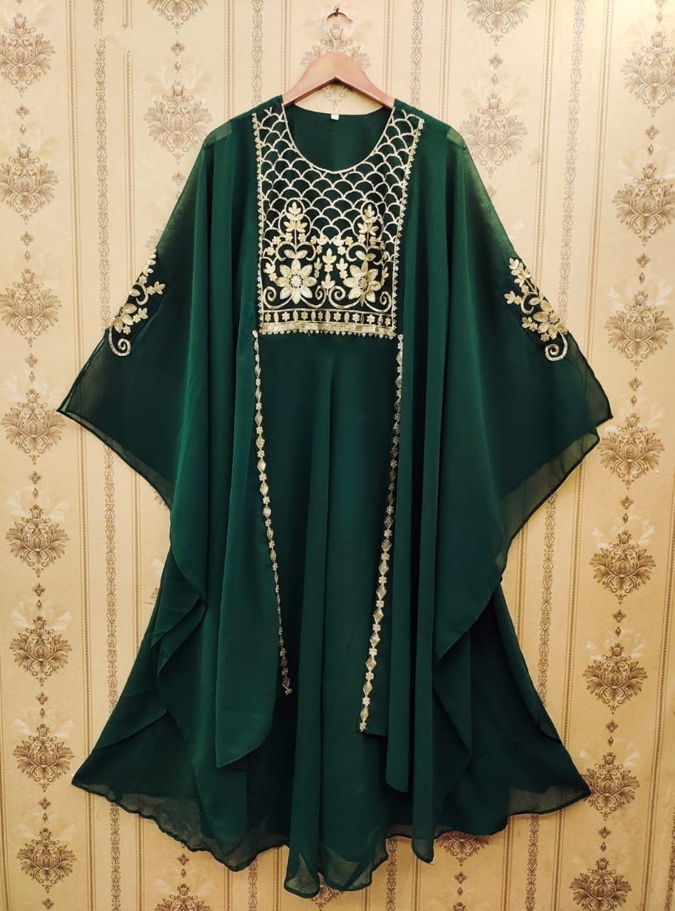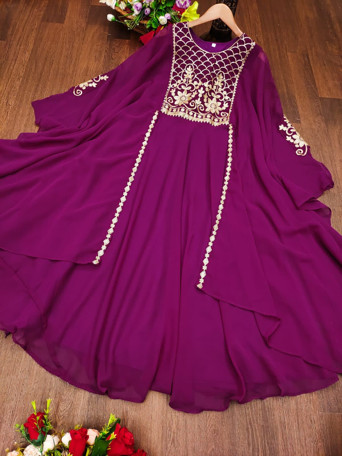 Gown Fabric :Heavy Faux Geourgett With Attech Shrug