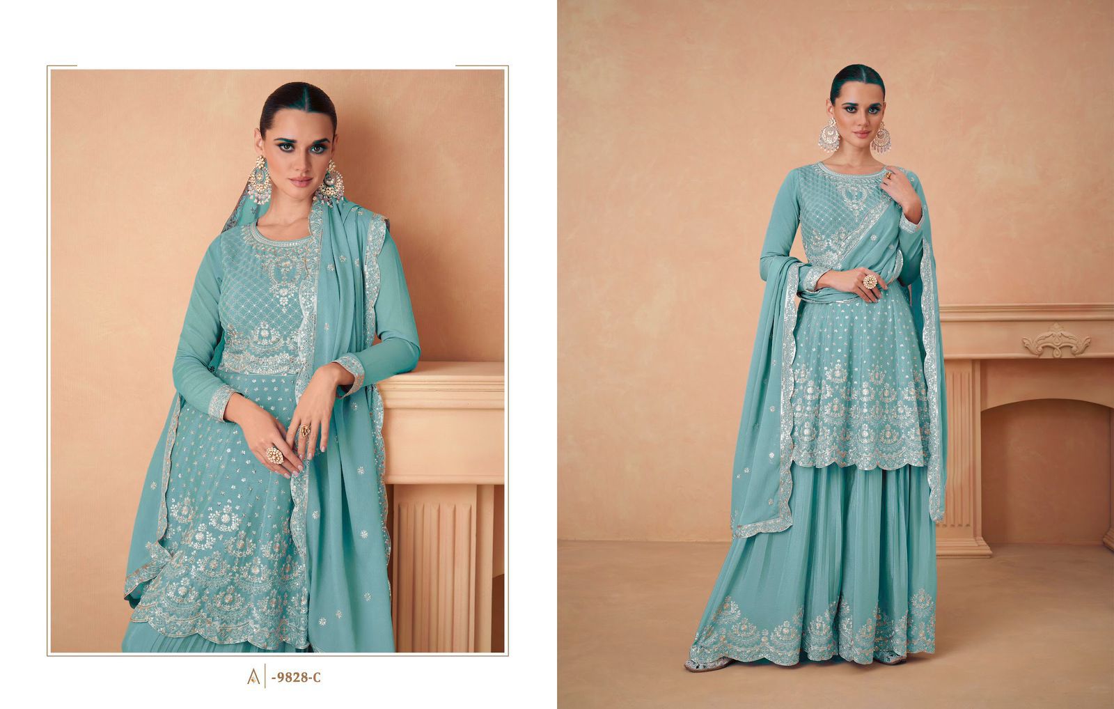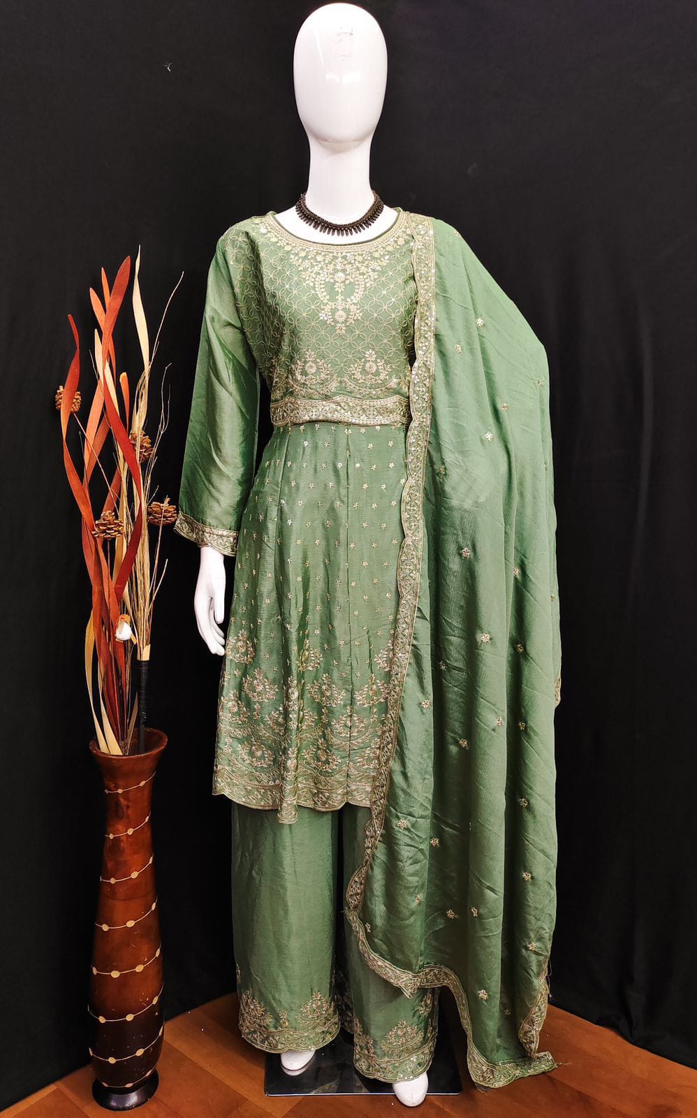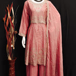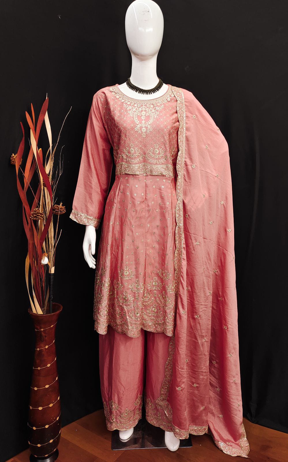 BOTTOM:- HEAVY  CHINON WITH SEQUENCE EMBROIDERY WORK