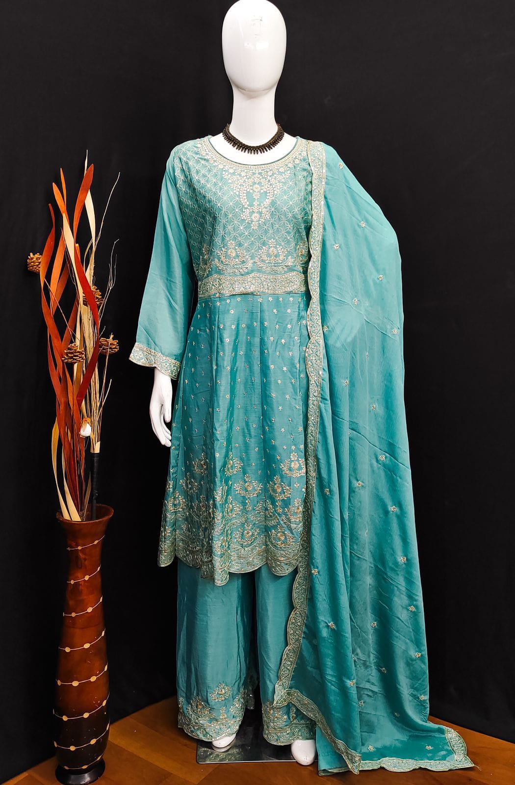 TOP:-HEAVY CHINON WITH SEQUENCE EMBROIDERY WORK