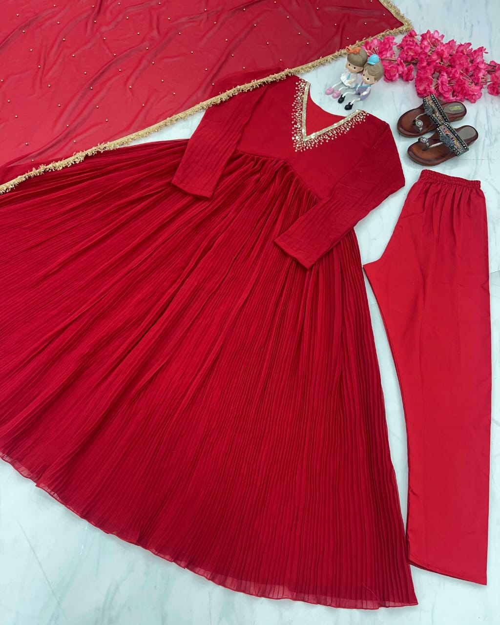 👉 🧚‍♀️Alia Cut Gown Fabric :Heavy Faux Georgette & Crush With Embroidery Work With Fancy Full Sleeve