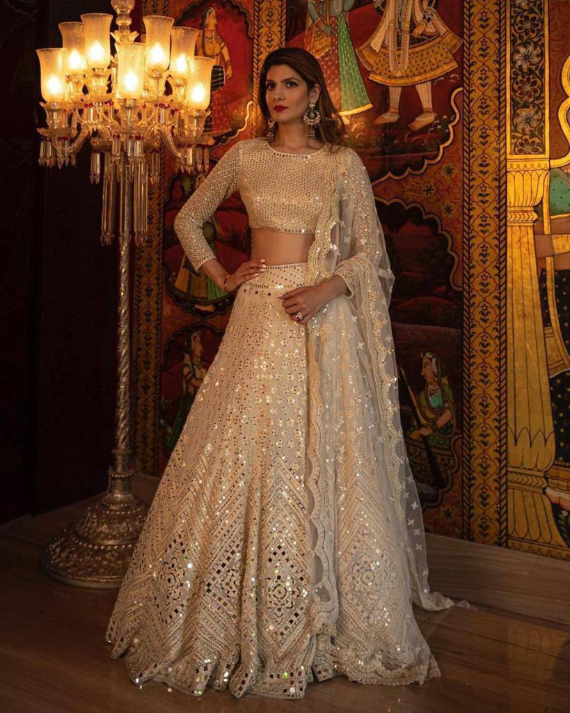 Launching Soft Mono Net Foil Mirror Embroidered Work Lehenga