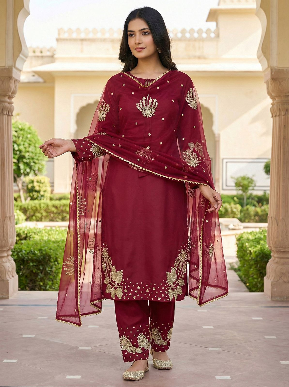 *Dupatta Fabric* :*Pure Soft Organza Silk With Embroidery Sequence Work With Lace Border And Patta*