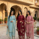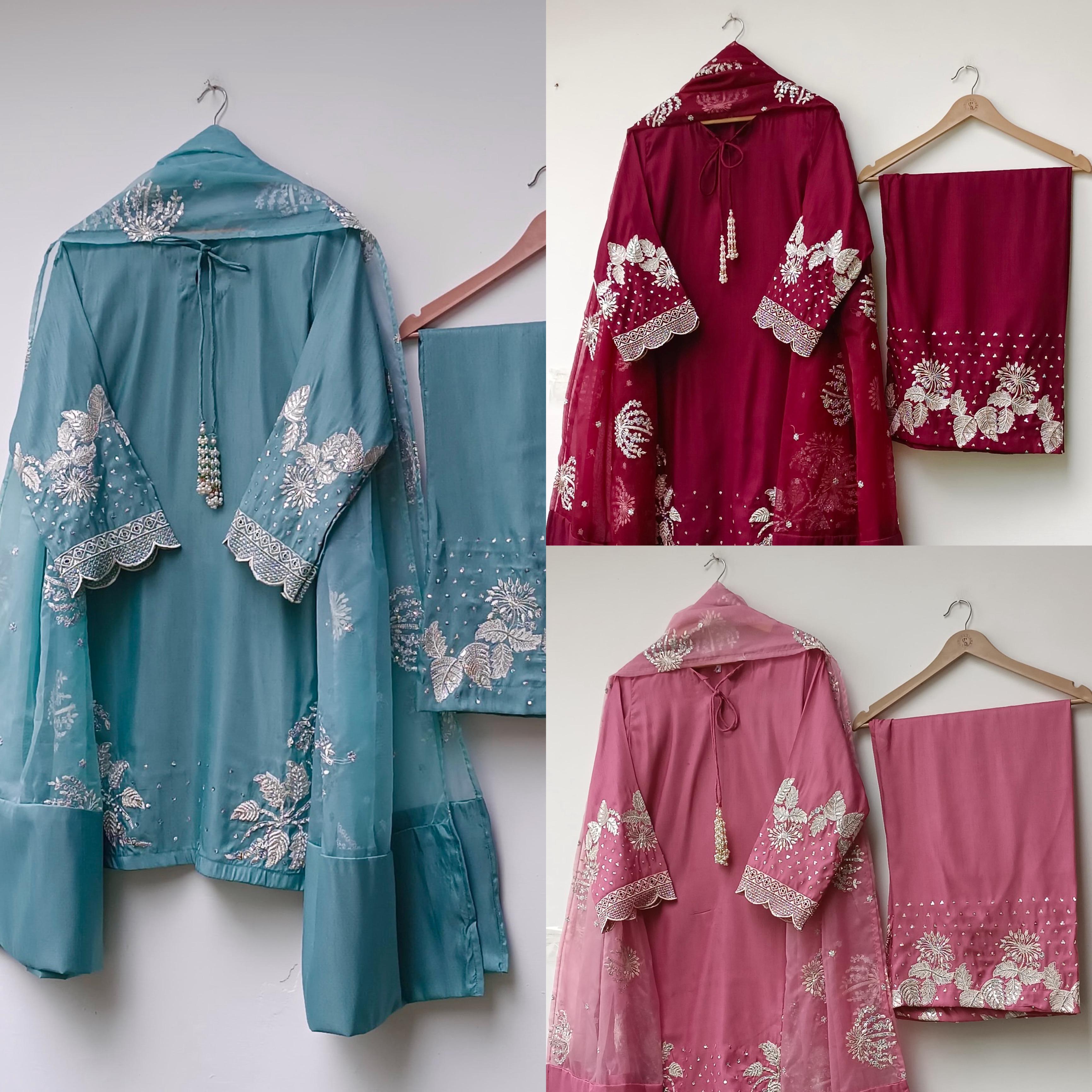 Presenting New Designer Collection In Natural Crep Silk Top-Bottom And Dupatta Set Fully Stitched Ready To Wear 🔥😍🥰