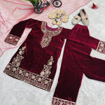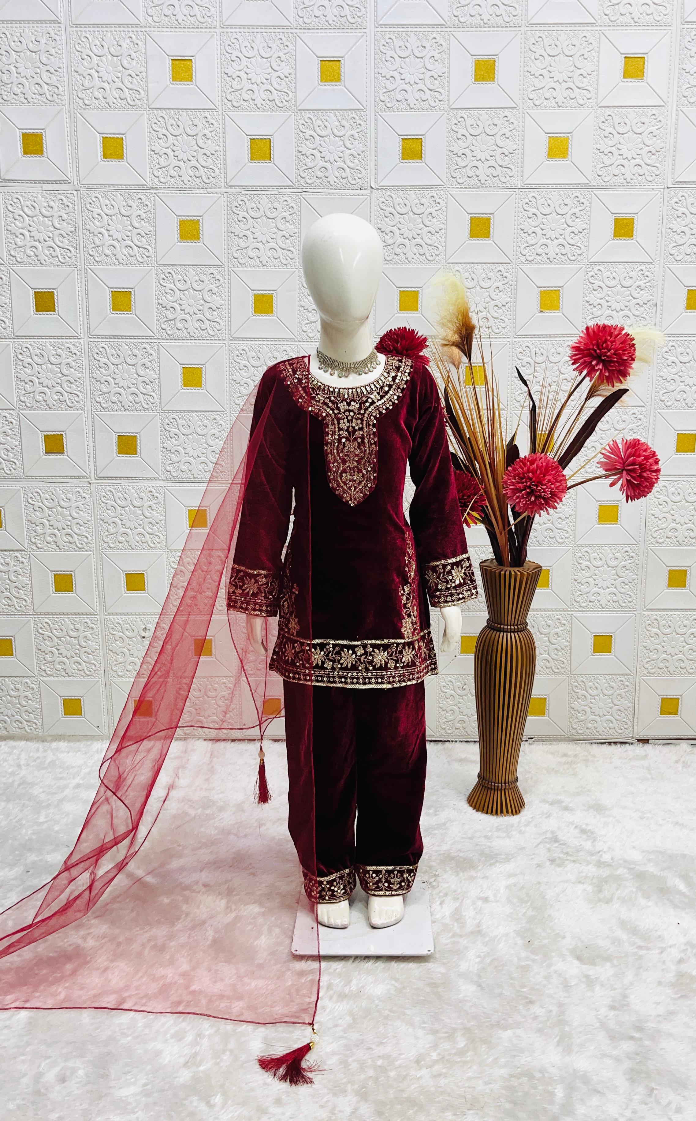 👗*Launching New Đěsigner Party Wear Look Heavy Pure Viscose Velvet Top Bottom & Dupatta Set*👗