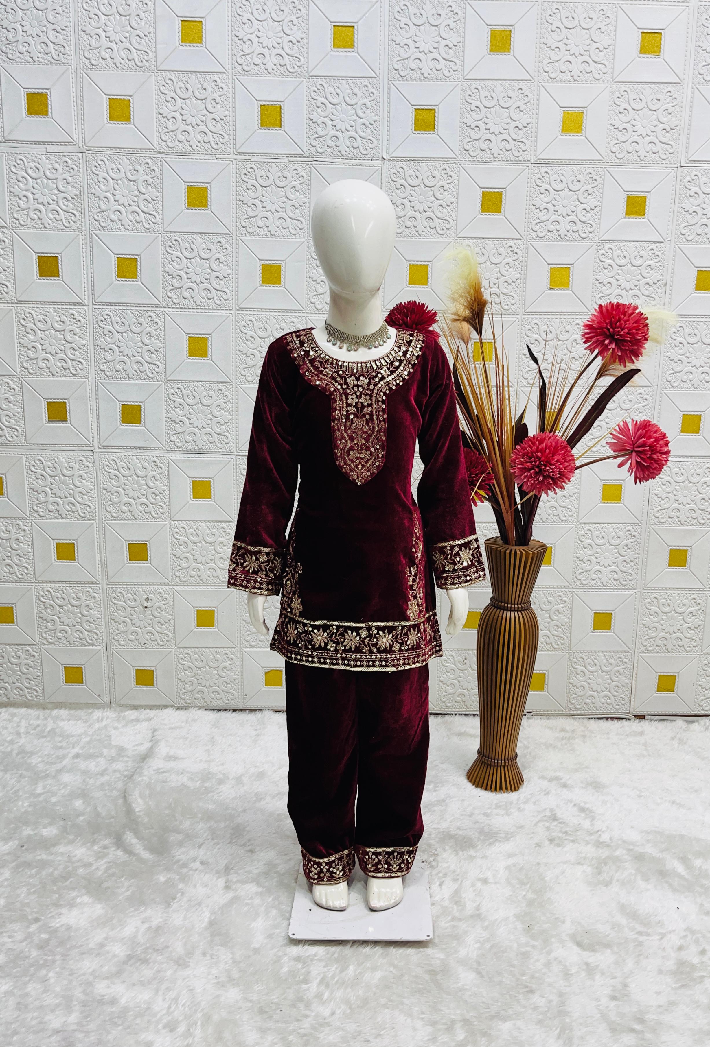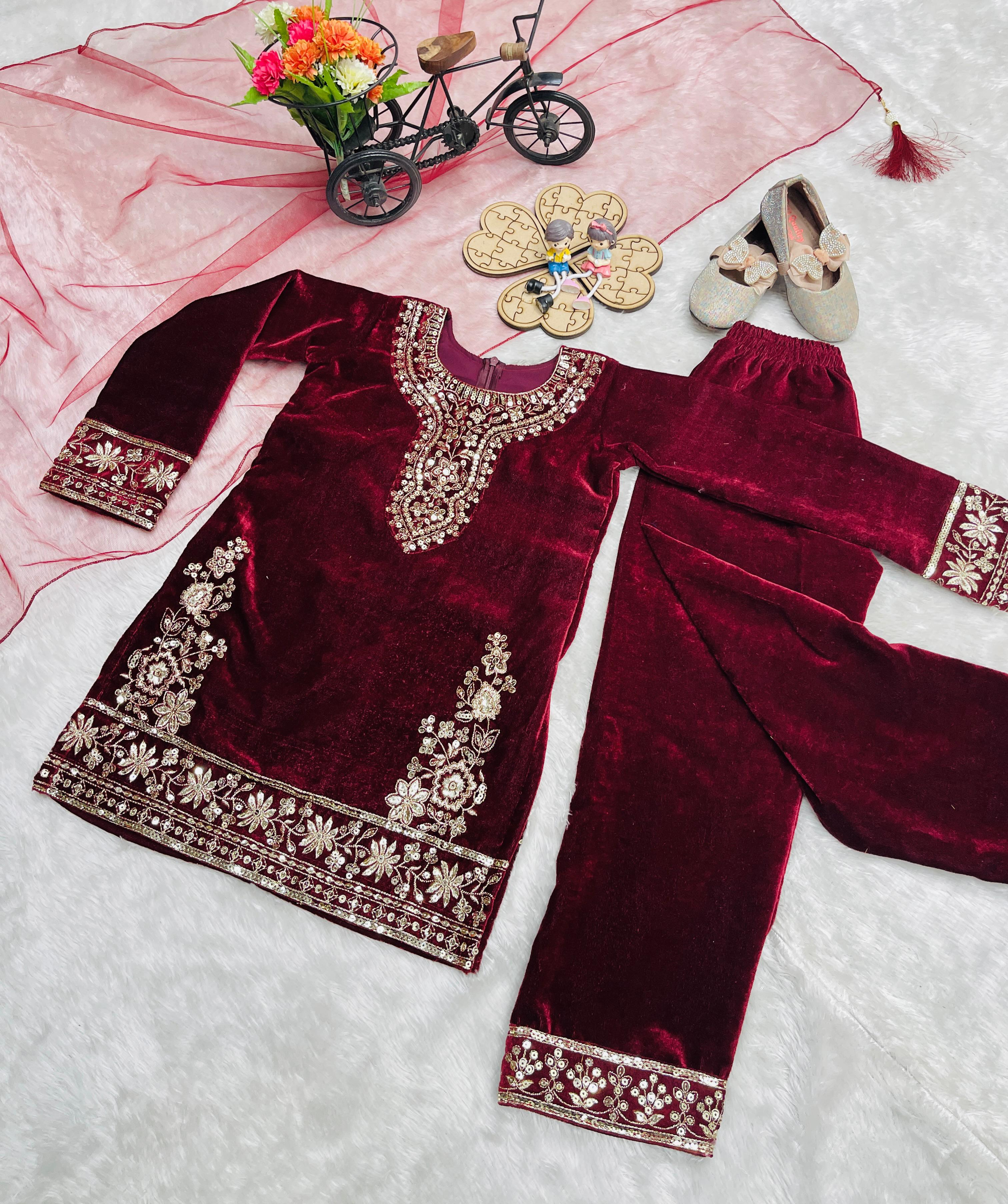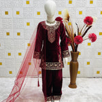 Maroon Designer Kids Velvet Suit