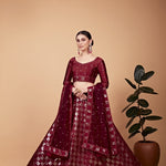 Maroon Elegant Teal Net Lehenga