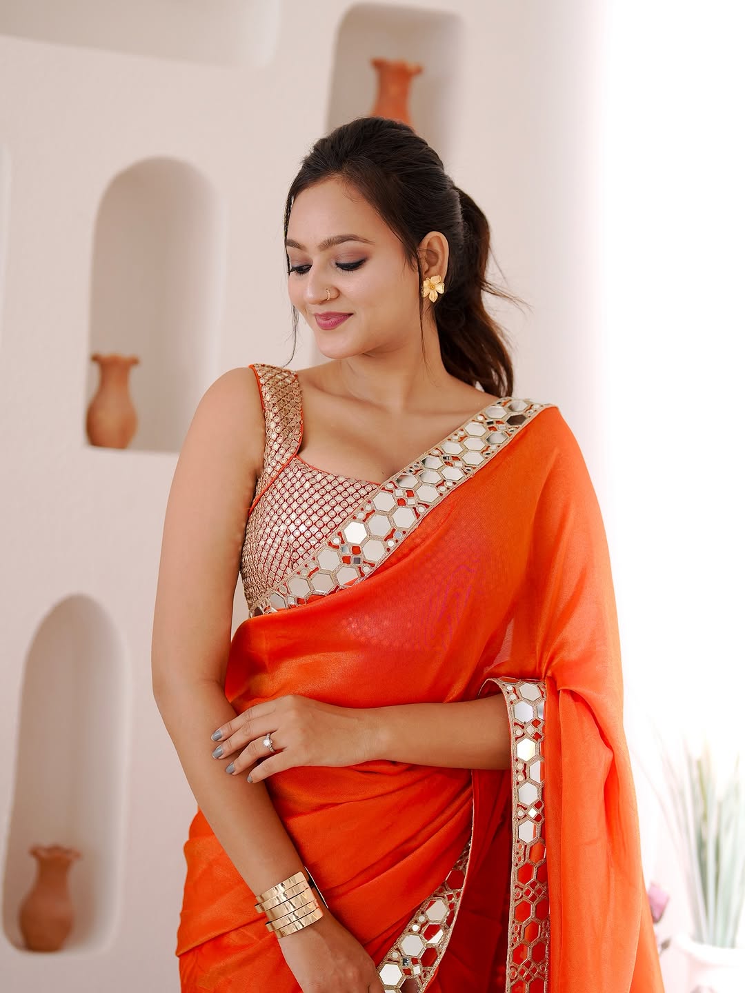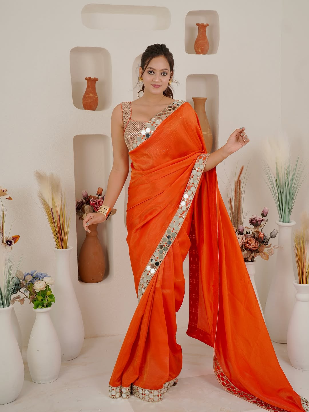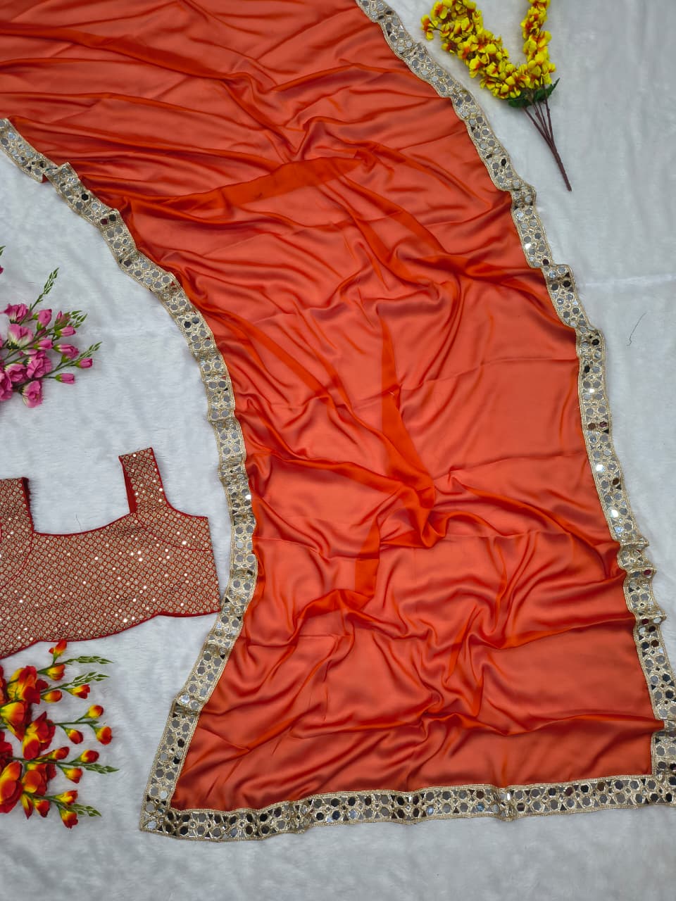 Saree : *Premium Rangoli Silk Embellished With Beautiful Heavy Real Mirror Work Lace Border Work*