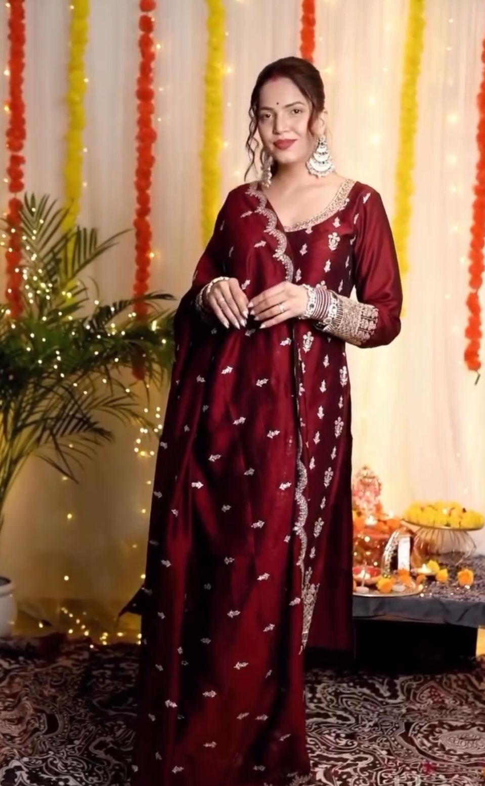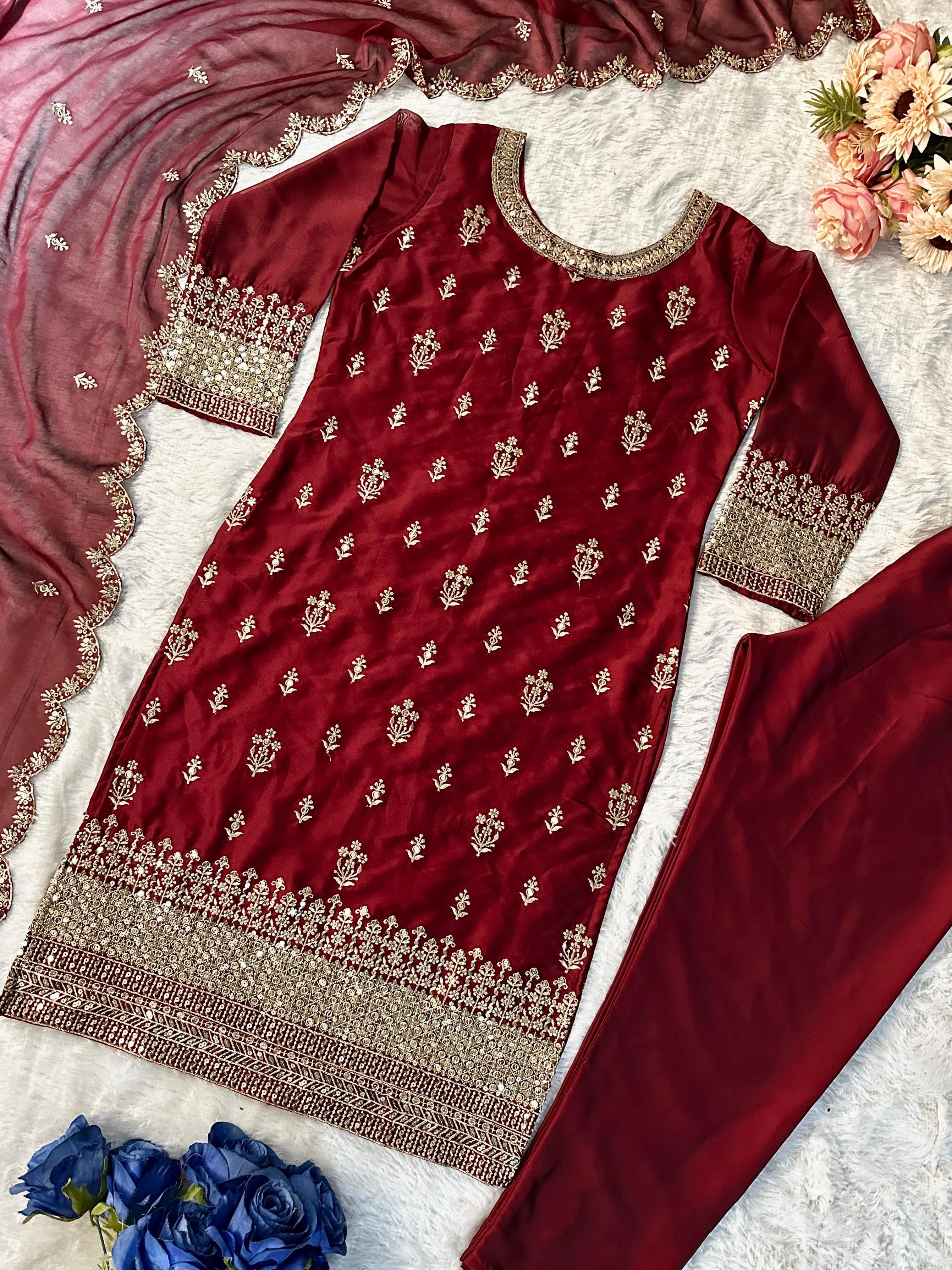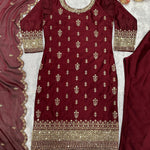 Party Wear Maroon Straight Suit