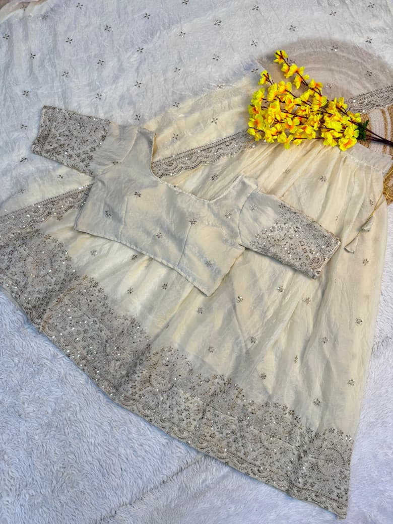 Premium Pure Glass Tissue Silk Half Saree Lengha With Embroidery Work