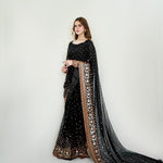 Pretty Black Embroidered Saree