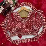 Fall in love with this stunning saree in an eye-catching shade, crafted with finesse and rich detailing. A perfect blend of grace and glam!