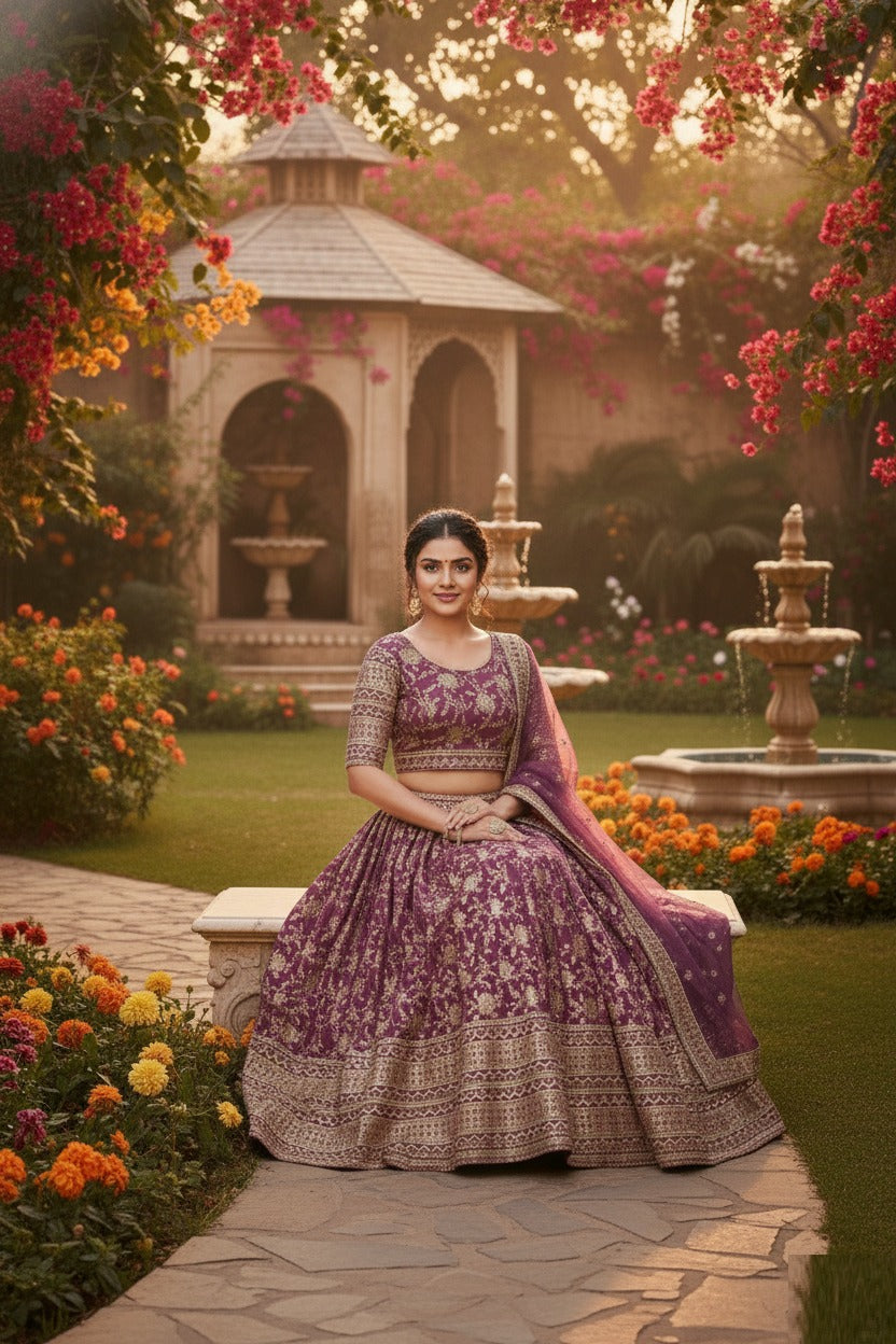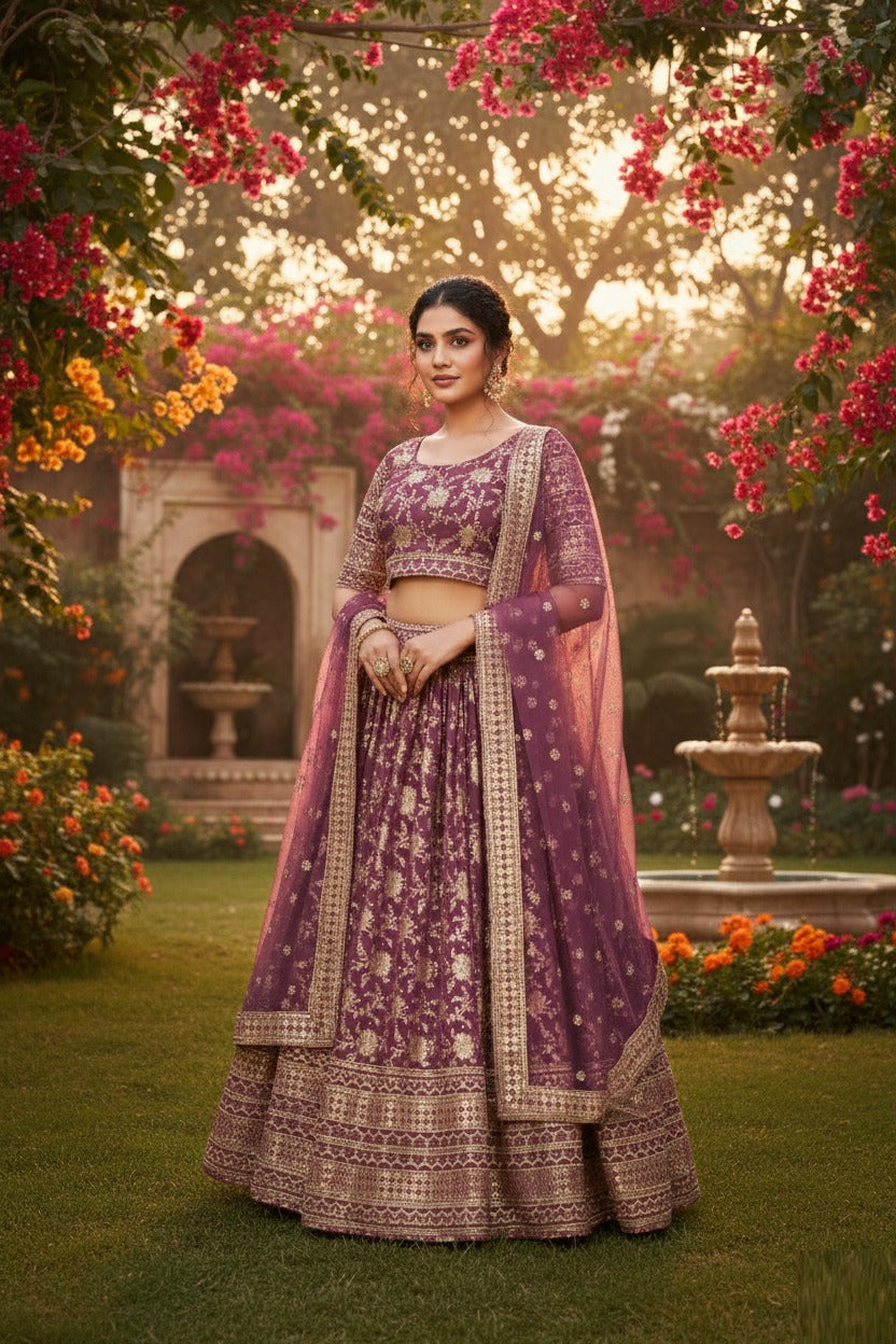 Rosy Brown Jacquard Lehenga