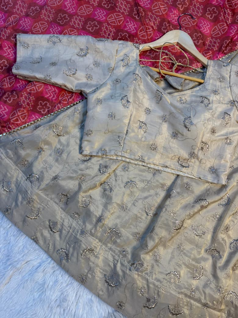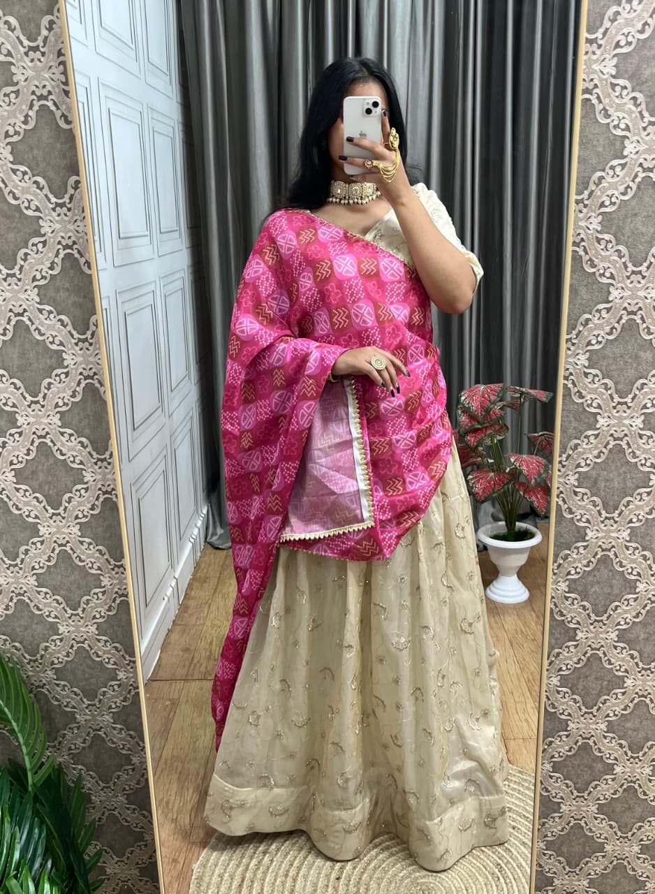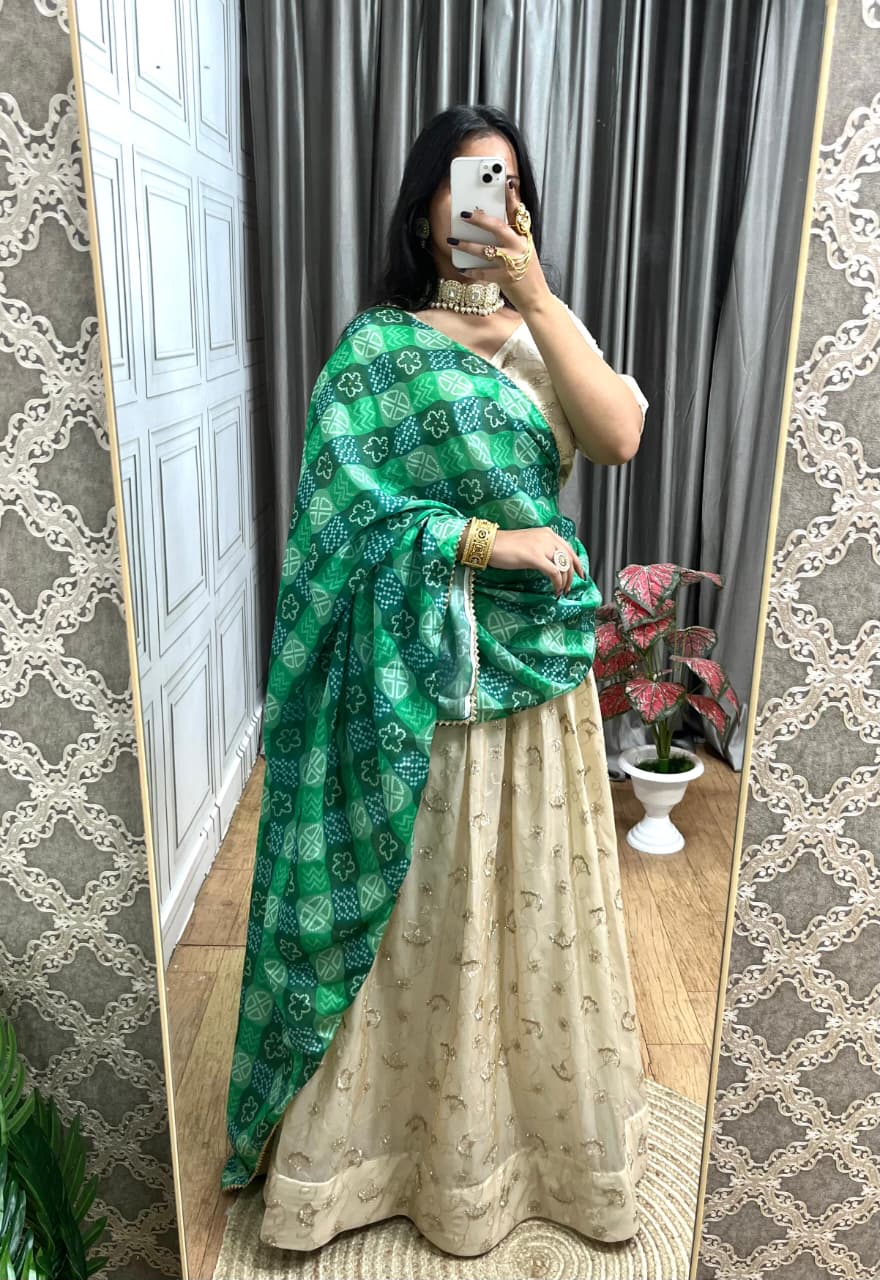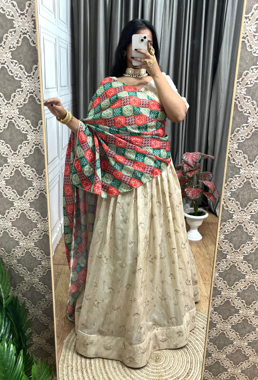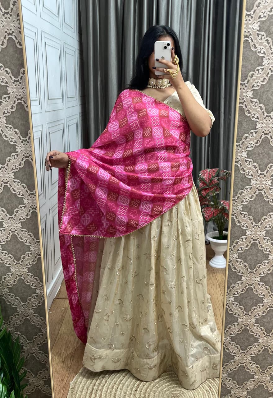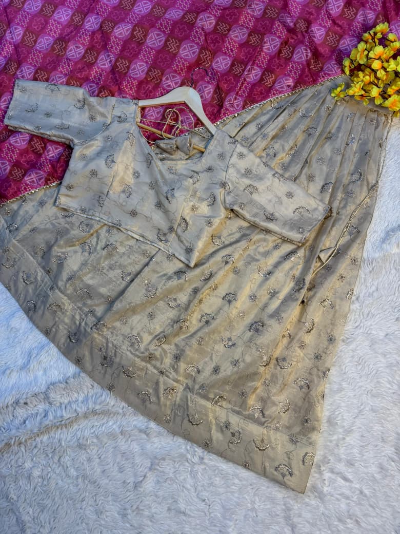 Premium Pure Mulberry Silk Lengha With Handwork Cutt Dana Work