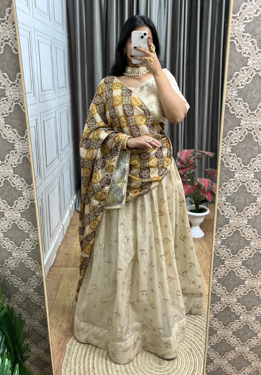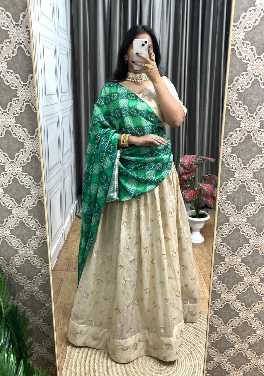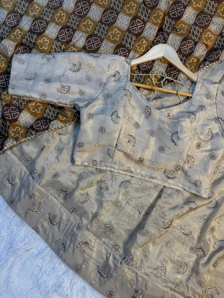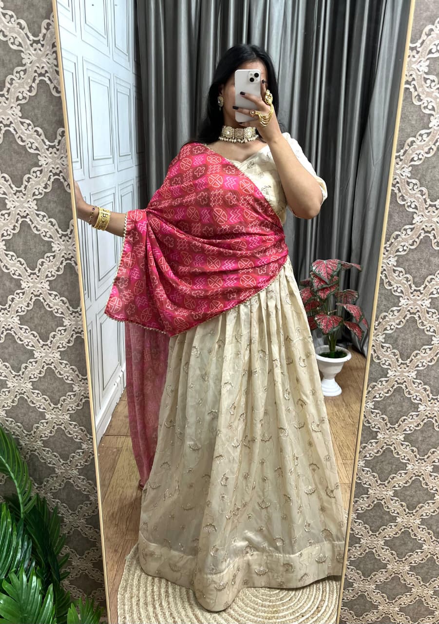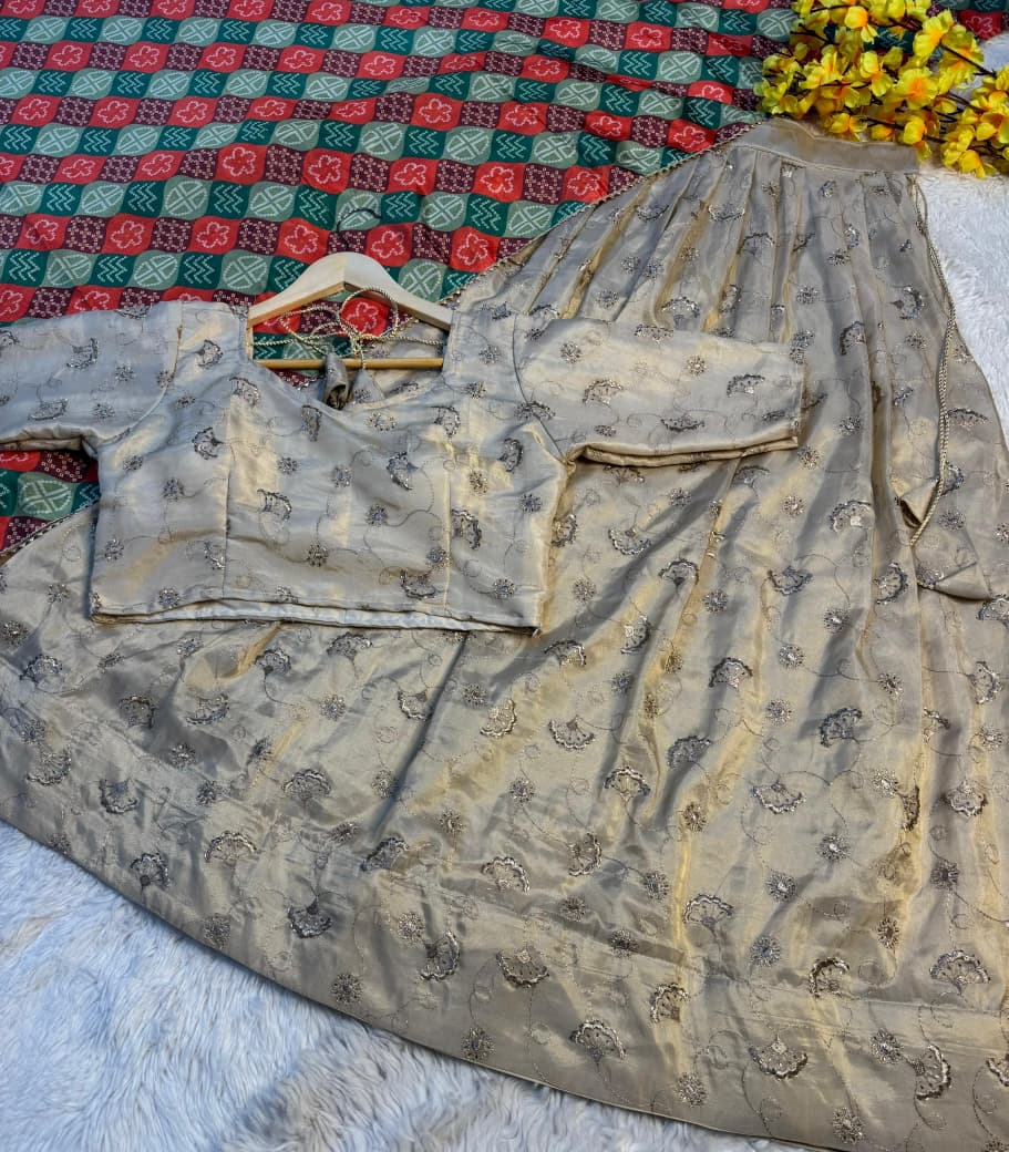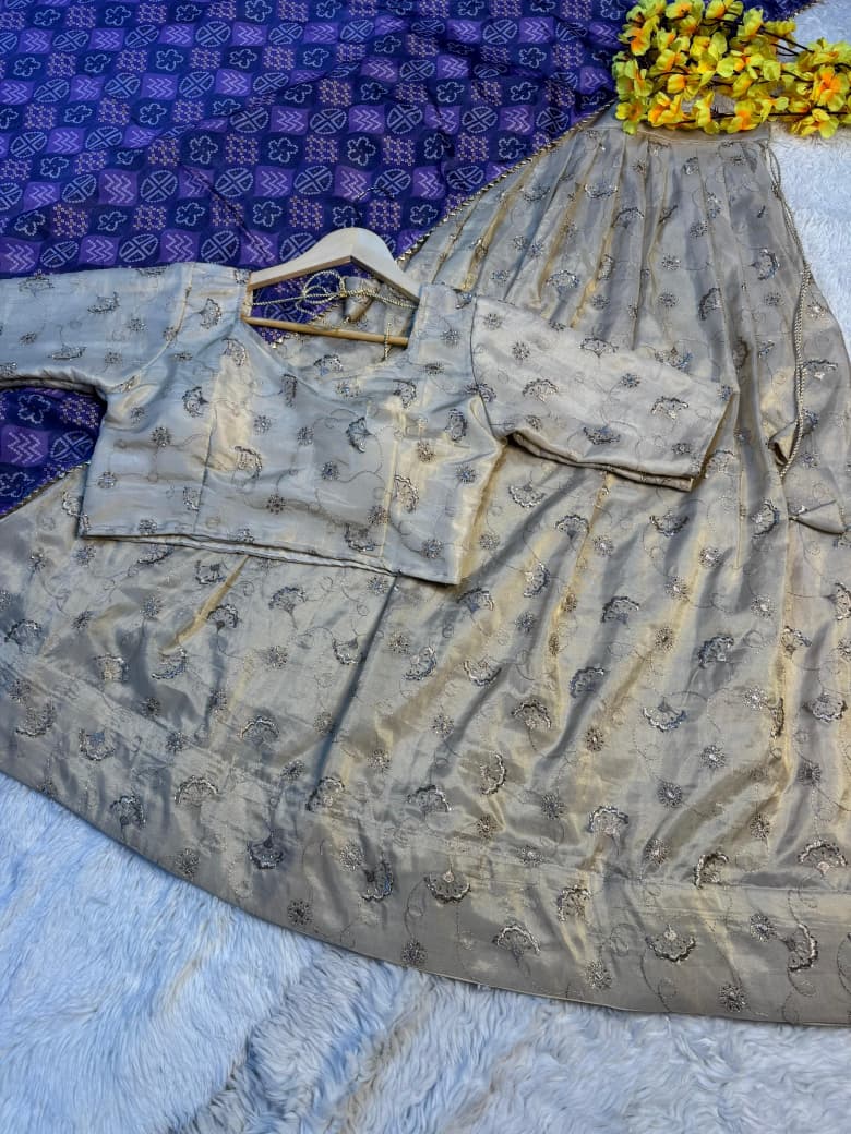 Premium Pure Mulberry Silk Lengha With Handwork Cutt Dana Work