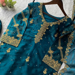 ___✨ EXCLUSIVE AND TRENDY FOR WEDDING SEASON OUR SEQUENCE EMBROIDERY WITH BEADS WORKED TOP, PLAZZO AND DUPATTA IN ZIMMY CHOO ✨___
