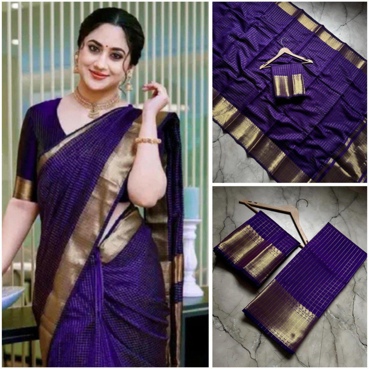 *Beautiful Art Silk Jacquard Border Saree With Unstitched Running Blouse For Women Wedding Wear Party*