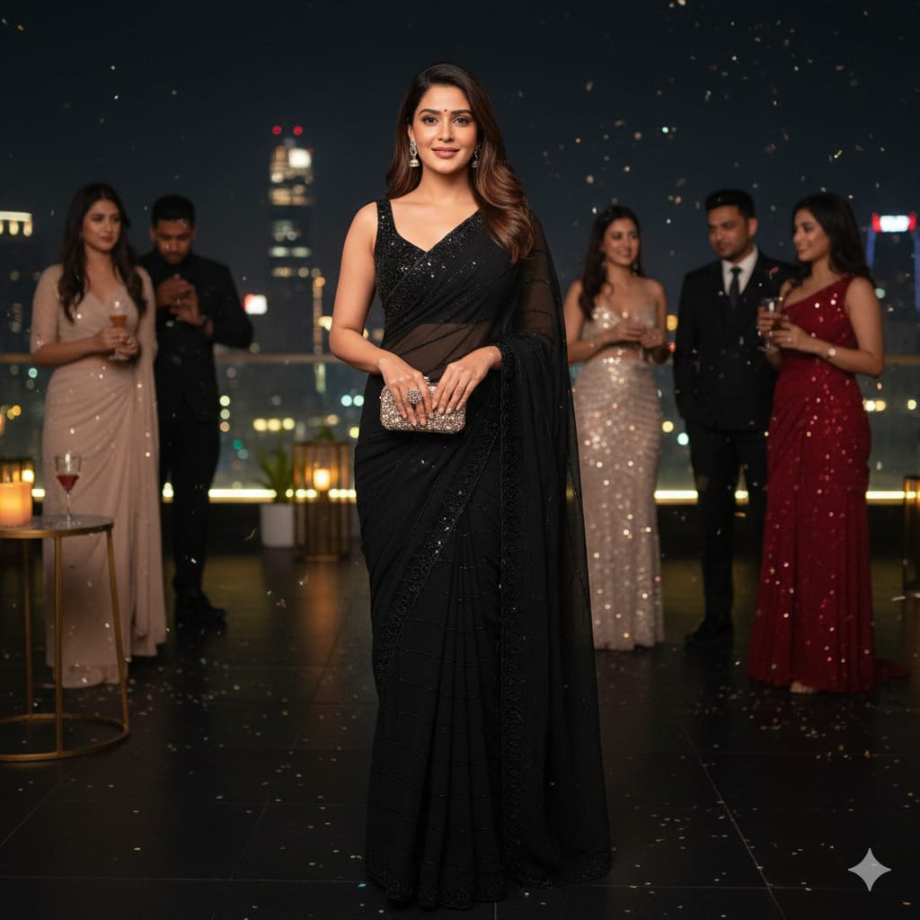 *On pure Georgette sarees in velvet shine adorned with sequence and cutdana delicate handwork*