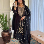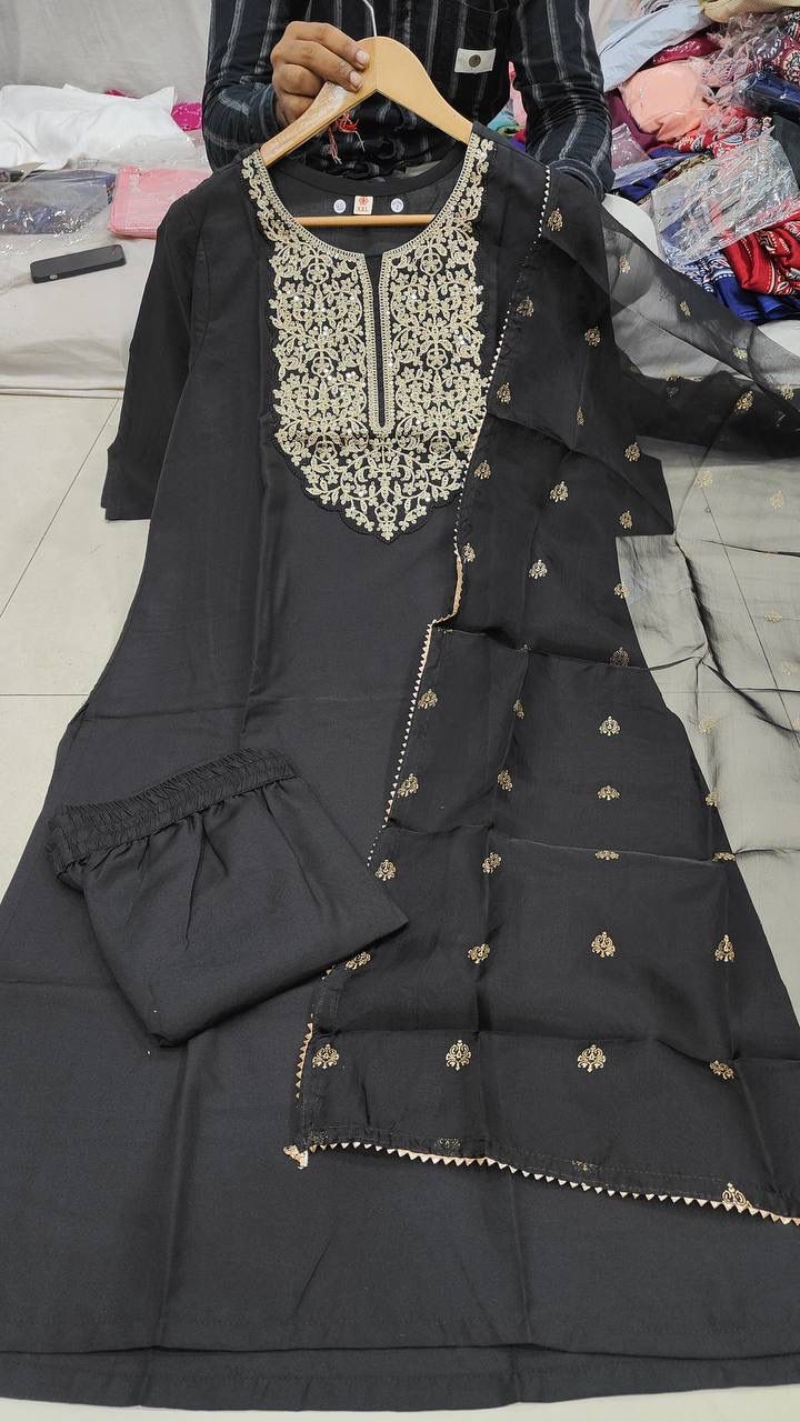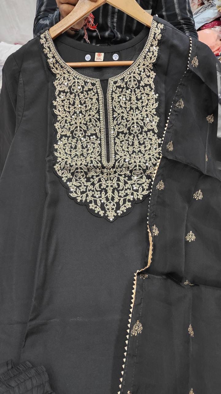 Women's Viscose Embroidered Straight Kurta with Pant And Dupatta Sets