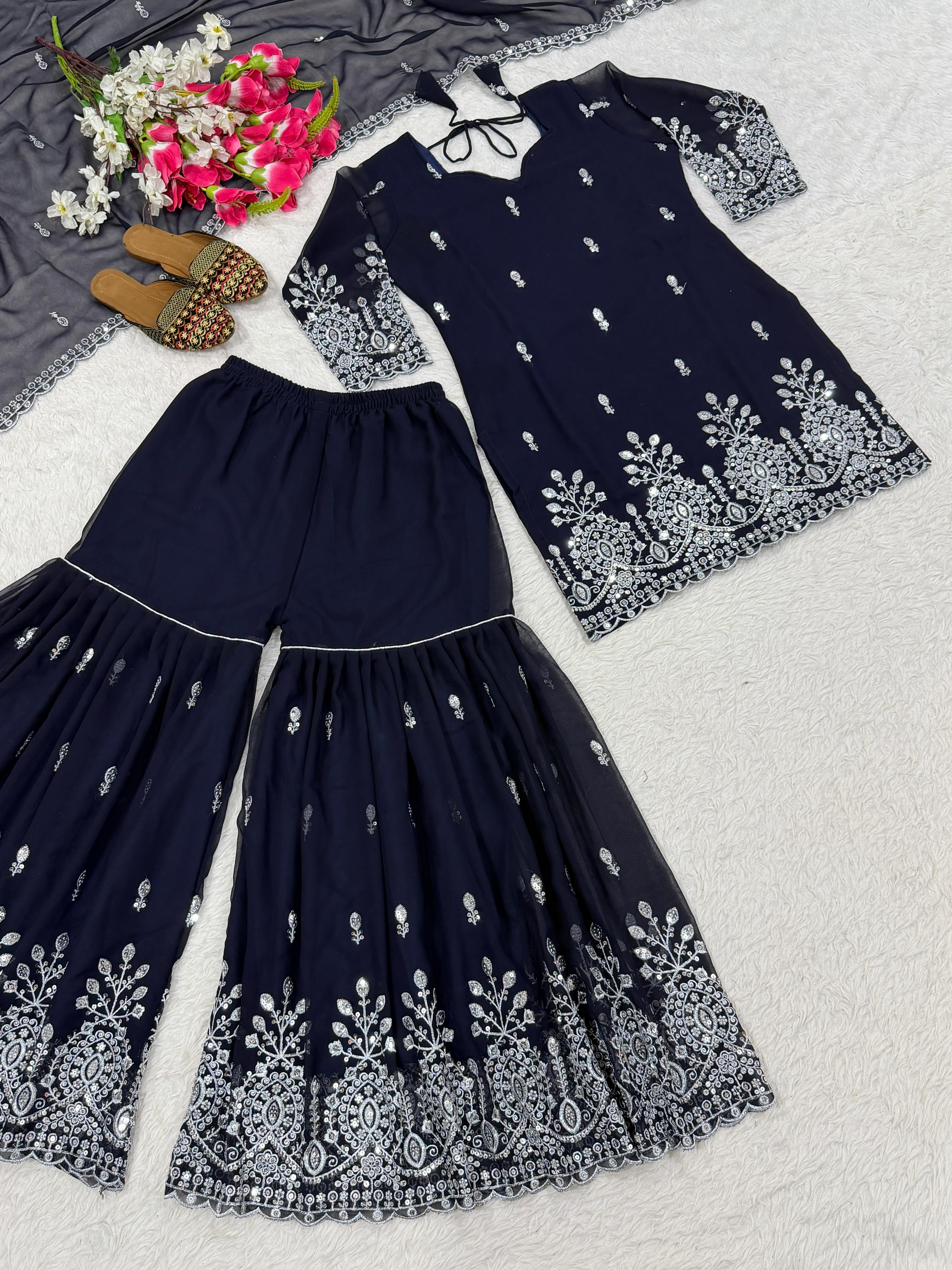 💃*Sharara Palazzo* : Fox Georgette Material With 5mm sequence Embroidery work...