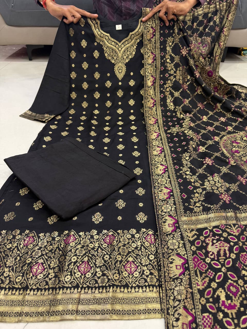 *It is paired with matching pants and pure wiving zari jacard dupatta. A must've for your upcoming gatherings.*