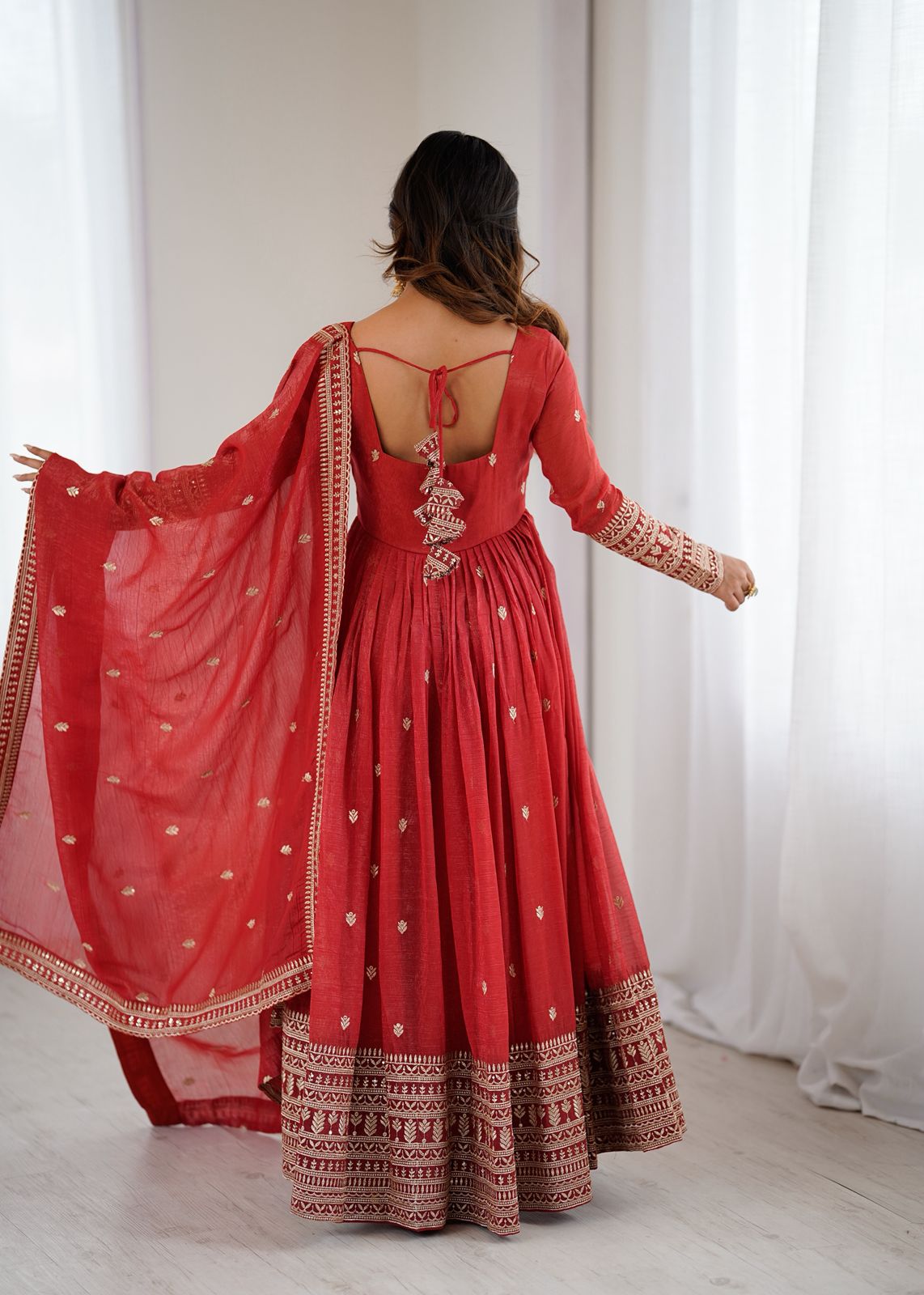 *PRESENTING NEW HIGH PREMIUM QUALITY PURE CRUNCHY SILK FABRIC FULLY FLAIR  GOWN,WITH DUPPTA SET*