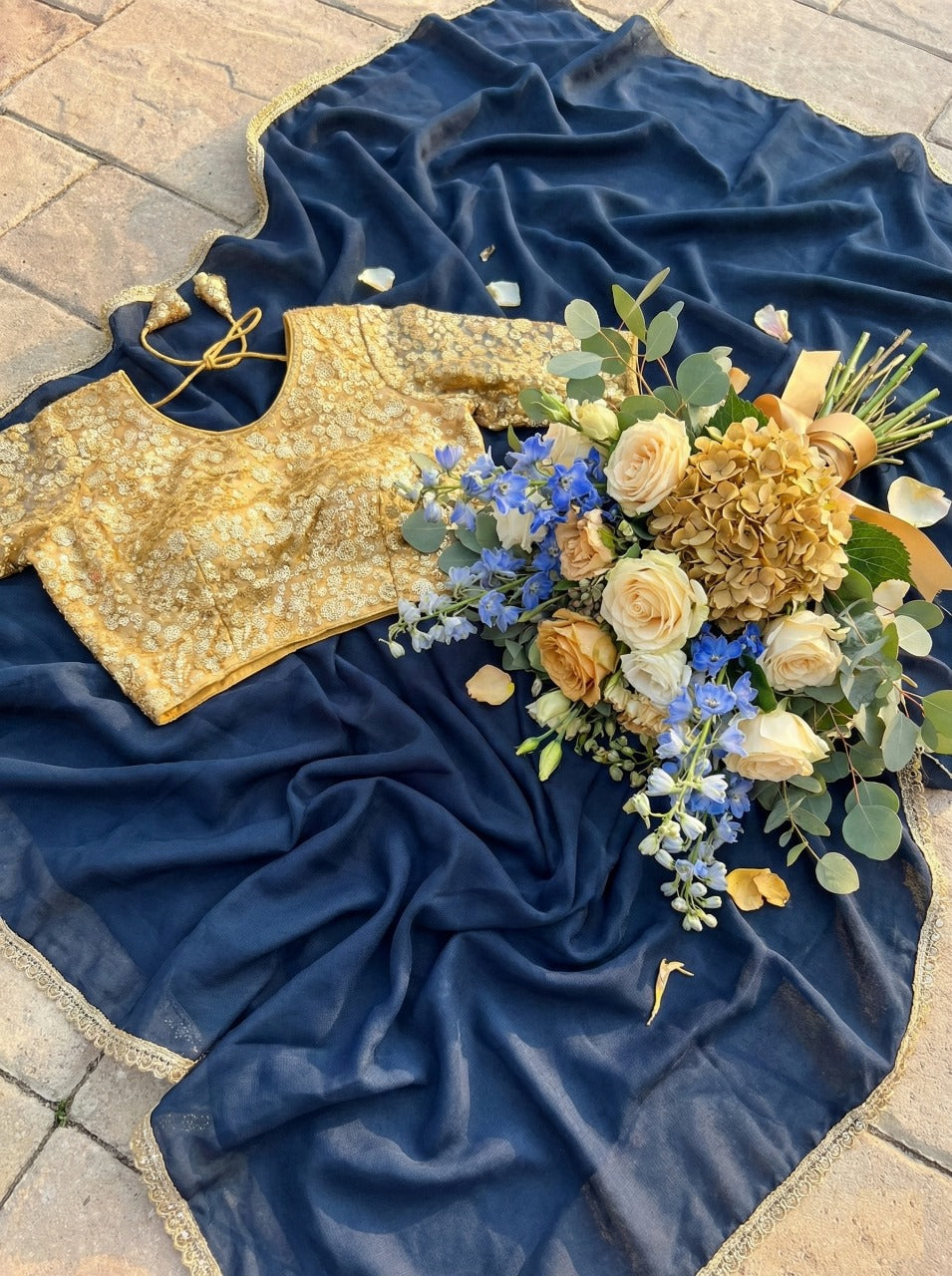 ELEGANT STAR GEORGETTE SAREE WITH STITCHED BLOUSE – TIMELESS BEAUTY