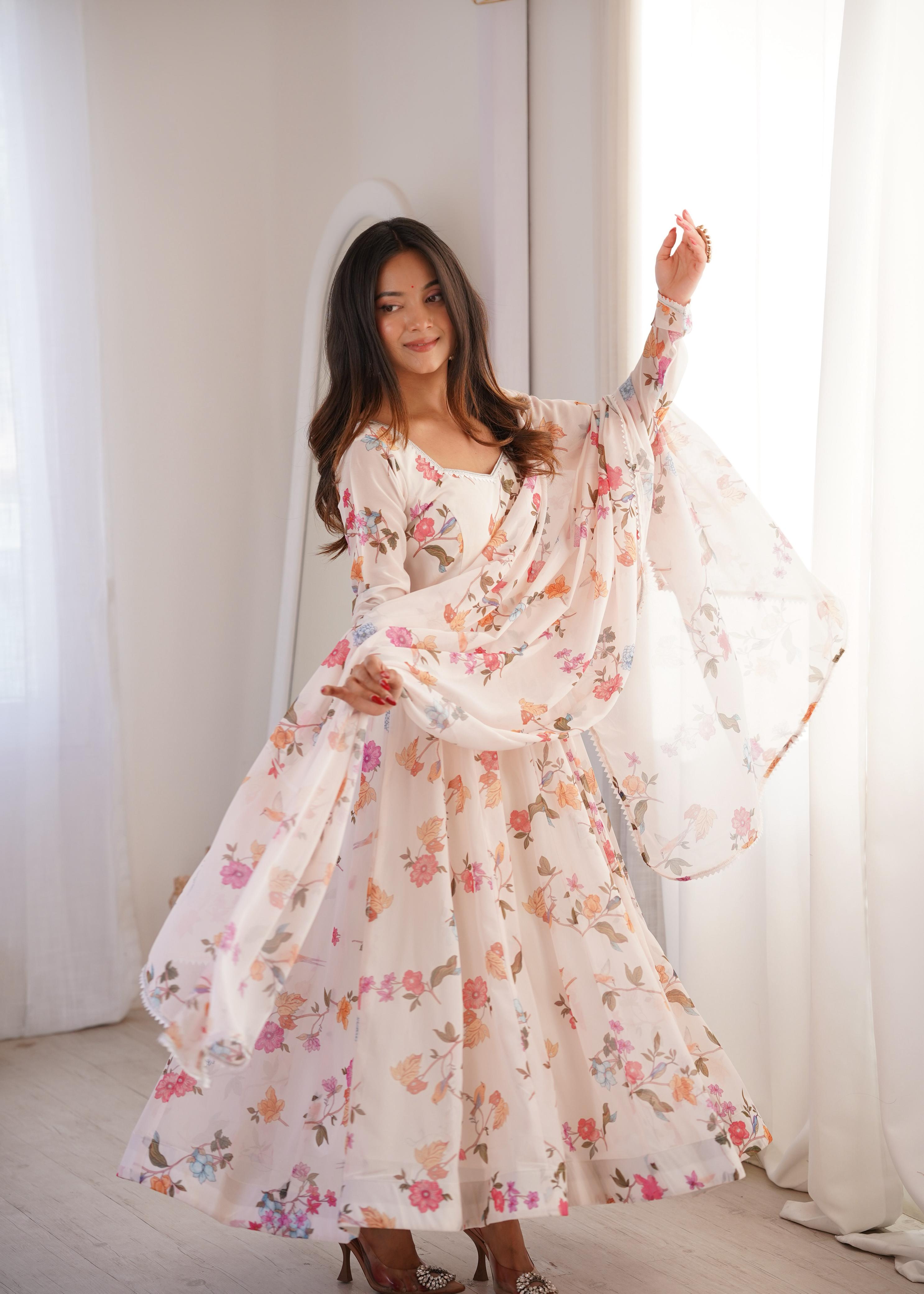 Designer Floral Printed Anarkali Gown