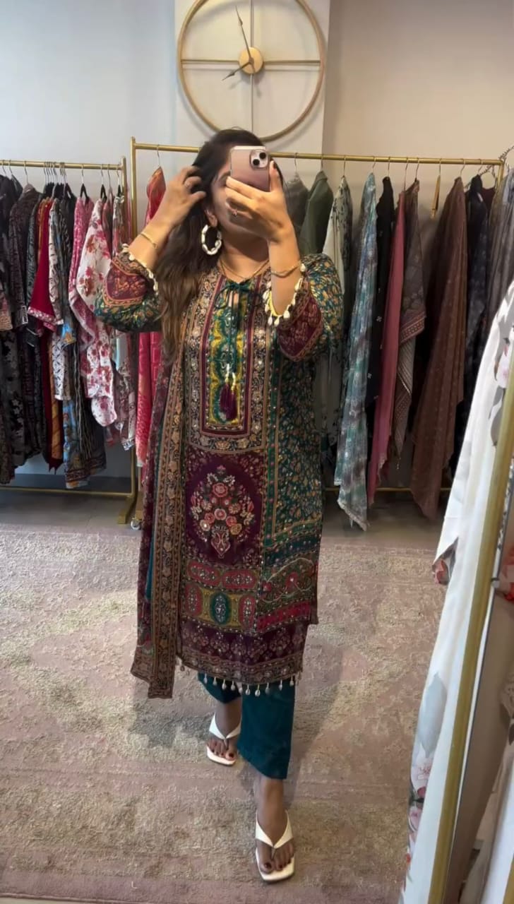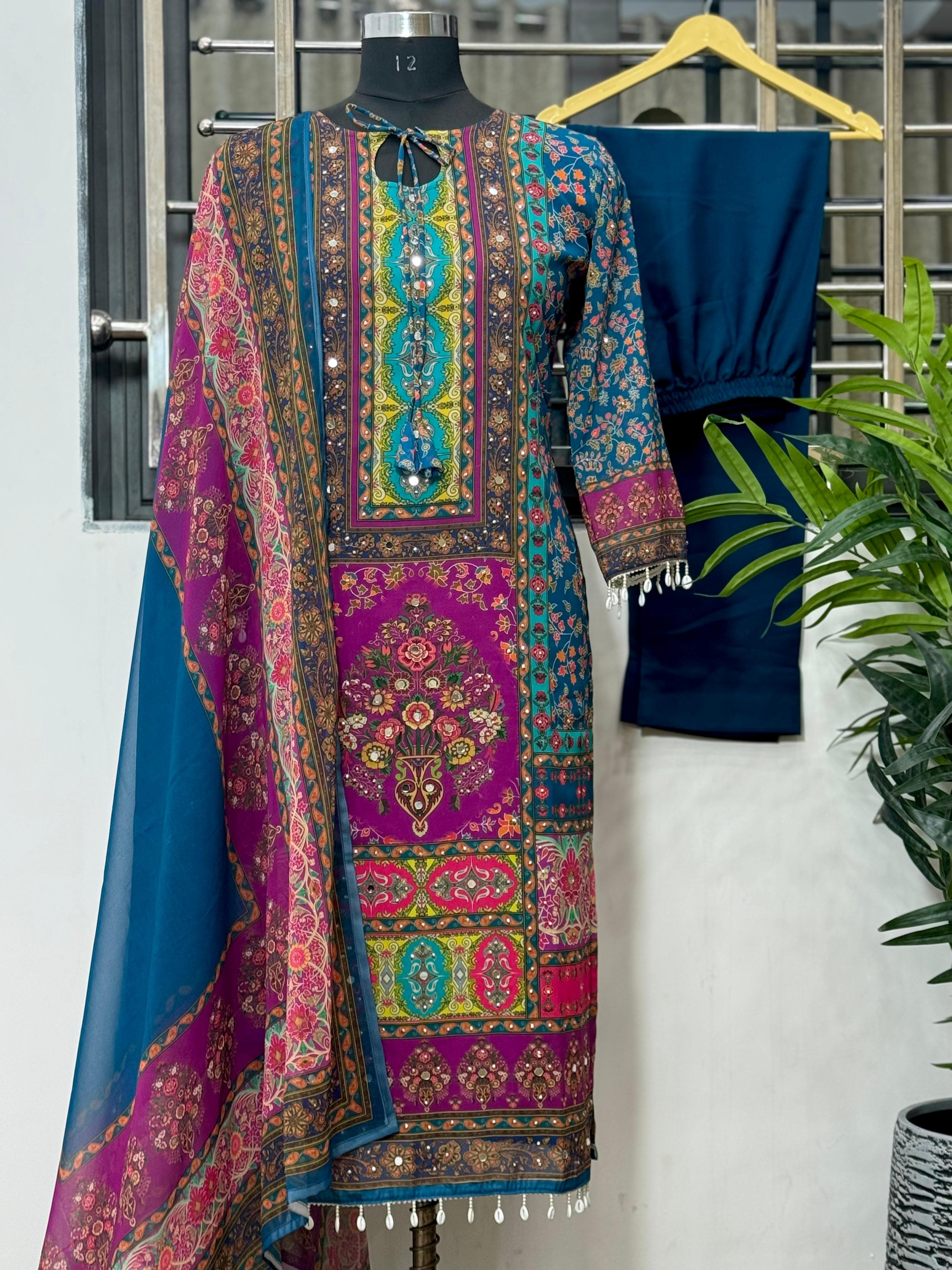 Presenting New Designer Collection In Heavy Georgette With Digital Print and Real Mirror Handwork and Diamond Handwork Top-Bottom And Dupatta Set Fully Stitched Ready To Wear 🔥😍🥰