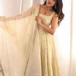 *Presenting New Designer Collection In Cosmos Gold With Embroidery Work Gown And Dupatta Set Fully Stitched Ready To Wear 🔥😍🥰*
